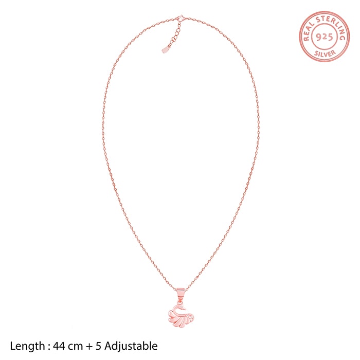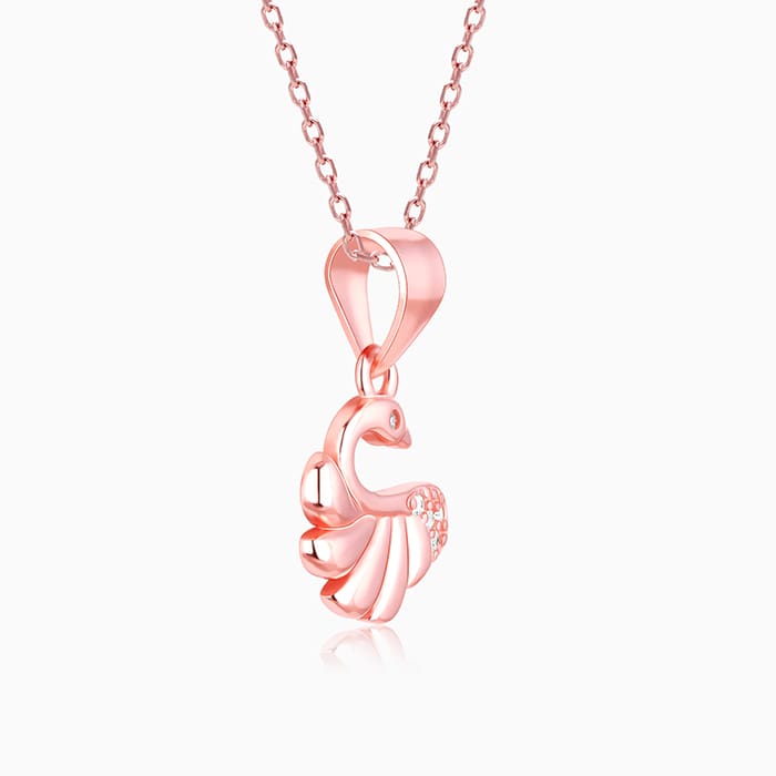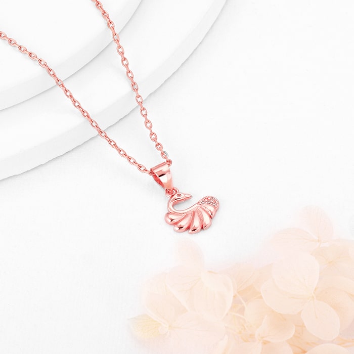 This rose gold pendant has a gorgeous swan design with small zircon placed as its eye and at the bottom.