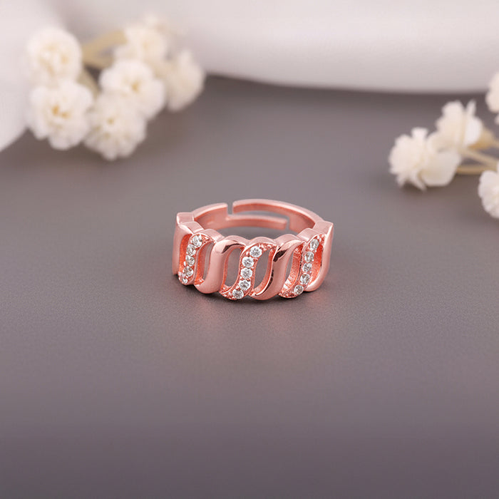 Some rings don’t just sit on your finger, they move with you, like every twist and turn of life. This rose gold beauty, with its flowing wave design and sparkling zircon accents, is a reminder that elegance isn’t about perfection. It’s about the confidence that makes you, you.