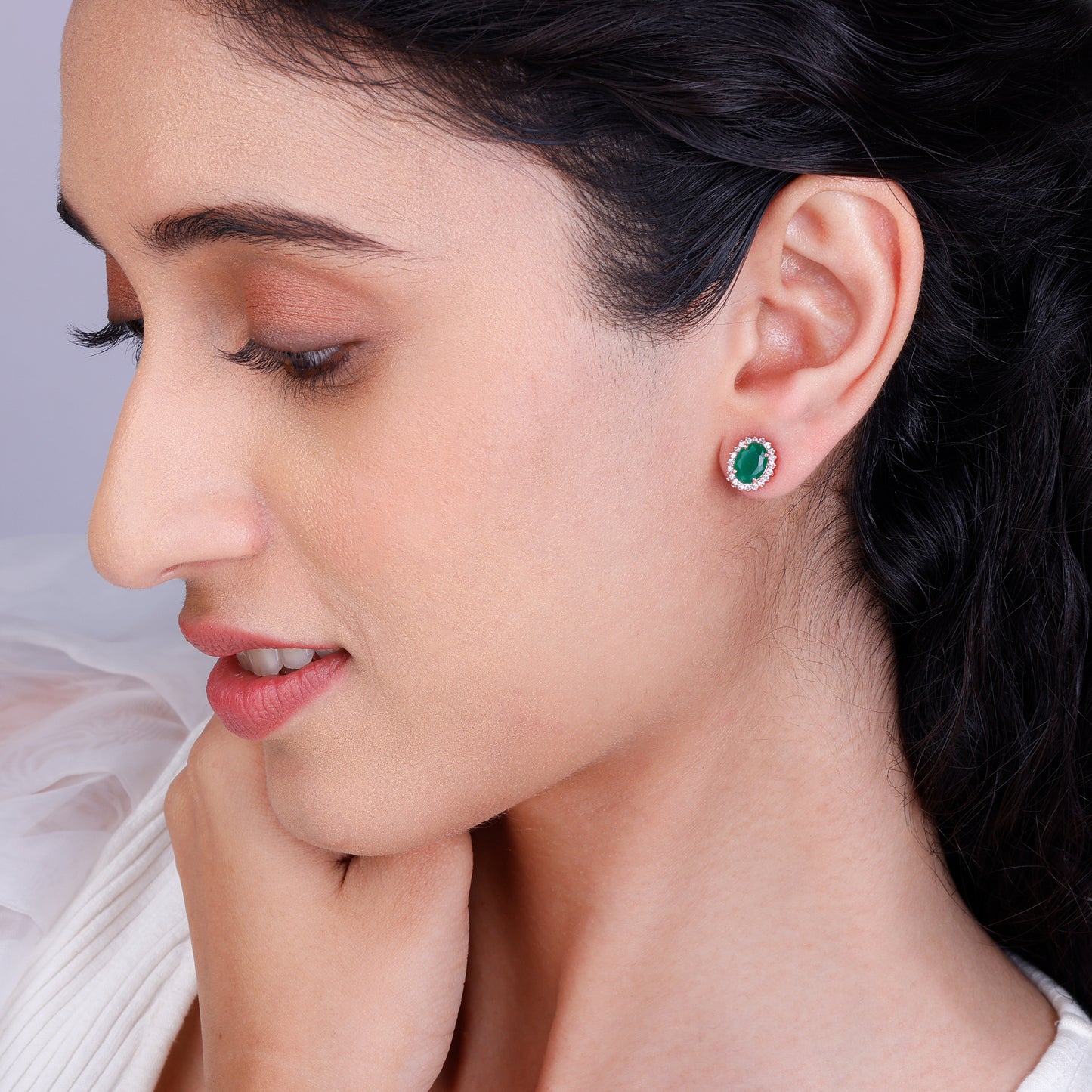The Rose Gold Evergreen Halo Studs are inspired by the fresh green hue that fills you with a newly found love for nature.