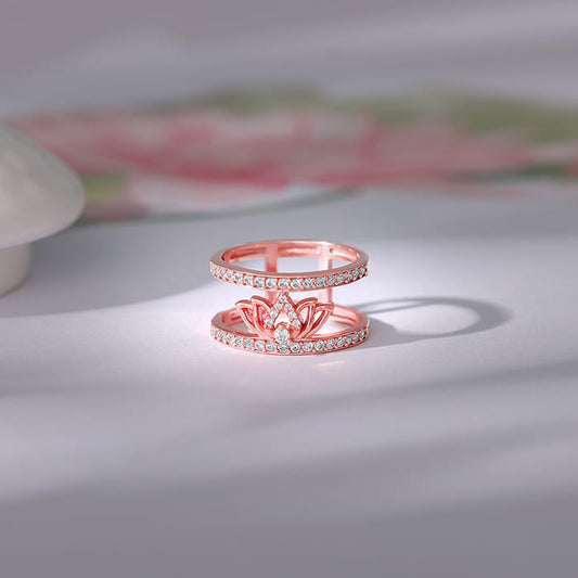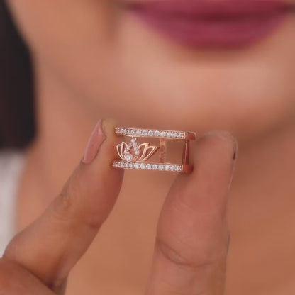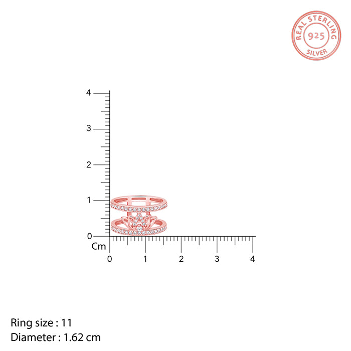 This rose gold ring features a dual ring design with a lotus motif placed inside, studded with zircons. Celebrate the timeless beauty of Indian textiles with GIVA's latest 'Magic of Tradition' collection. Wear and celebrate tradition, anytime.