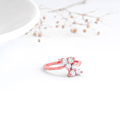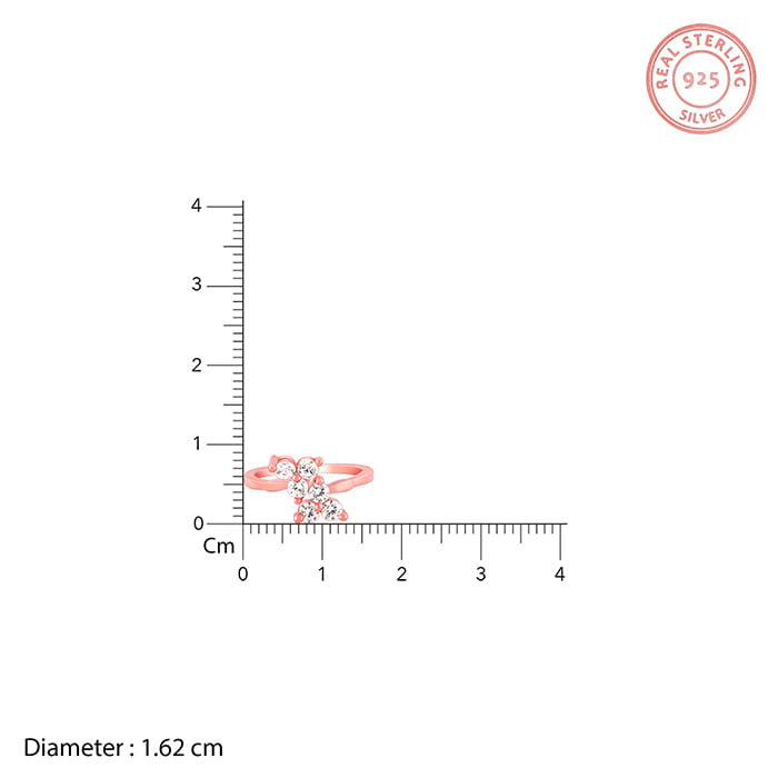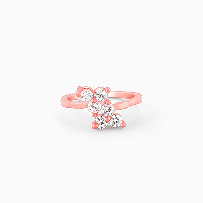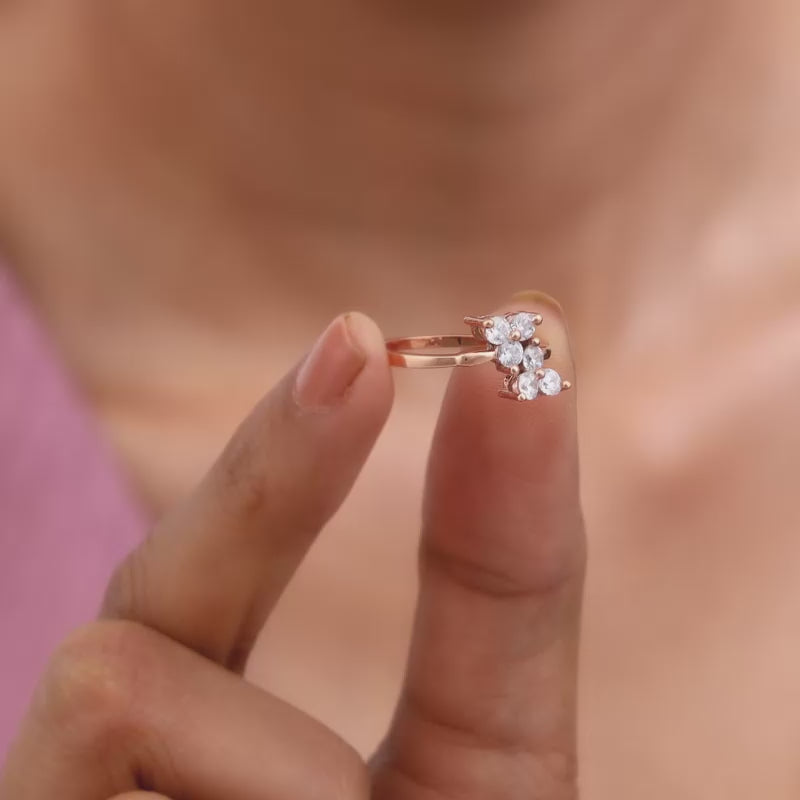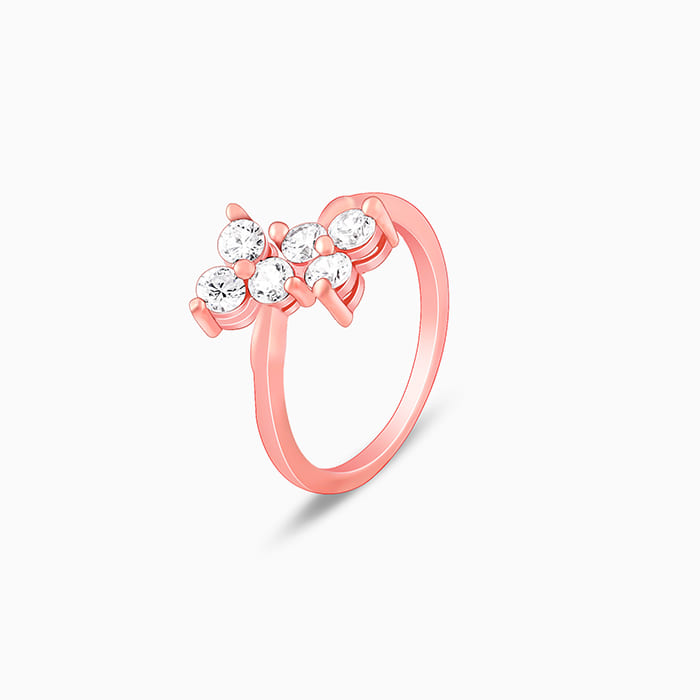 This rose gold (open) ring features a triangular design studded with zircons on both ends.
