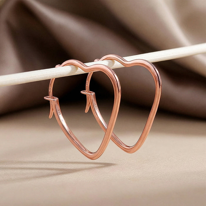 Playful yet polished, these heart-shaped hoop earrings add a soft romantic touch to everyday looks. Crafted in sterling silver with a rose-gold finish, they're lightweight, stylish, and easy to wear all day.