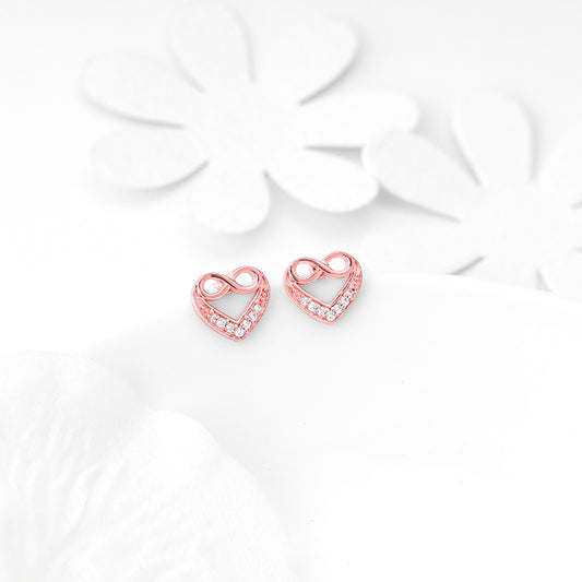 The Rose Gold Infinite Love in Heart Earrings are inspired by the love that stands the test of time.