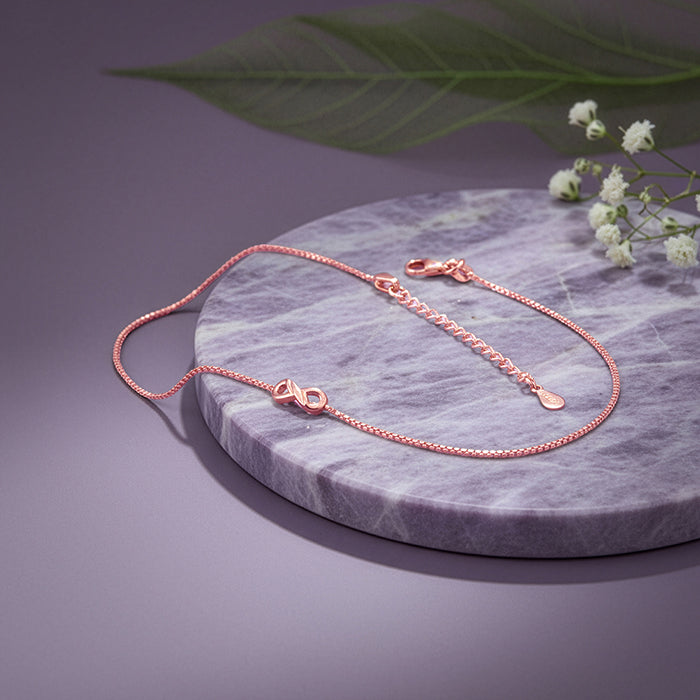 Some gifts carry a message that words can’t - this anklet is one of them. The infinity design, lined with sparkling zircons, says what the heart feels: that your bond, your love, and your connection are endless.