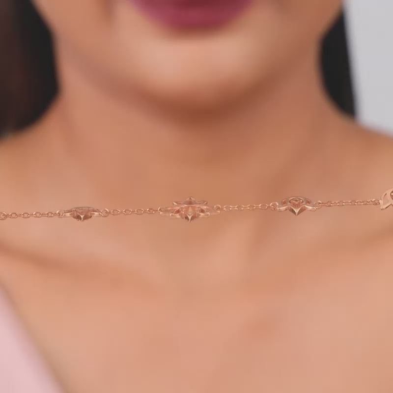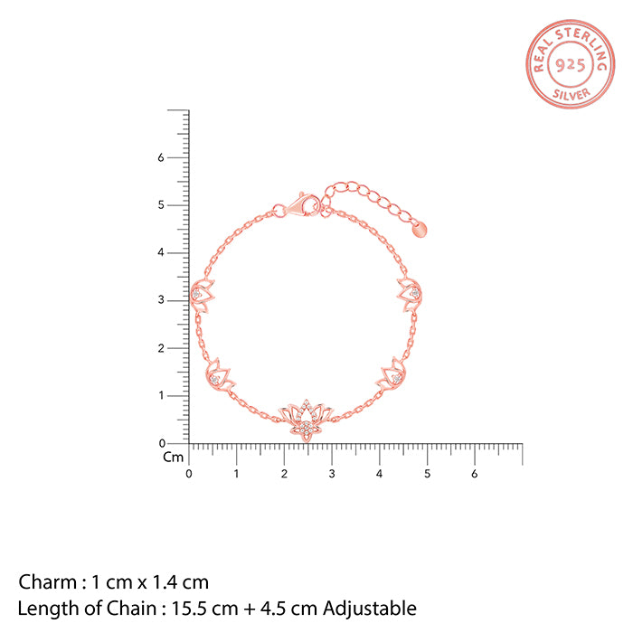 This rose gold bracelet features a lotus motif studded with zircons. Celebrate the timeless beauty of Indian textiles with GIVA's latest 'Magic of Tradition' collection. Wear and celebrate tradition, anytime.