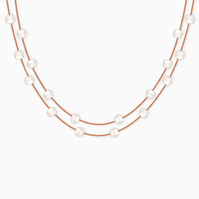 Rose Gold Layered Pearl Station Necklace