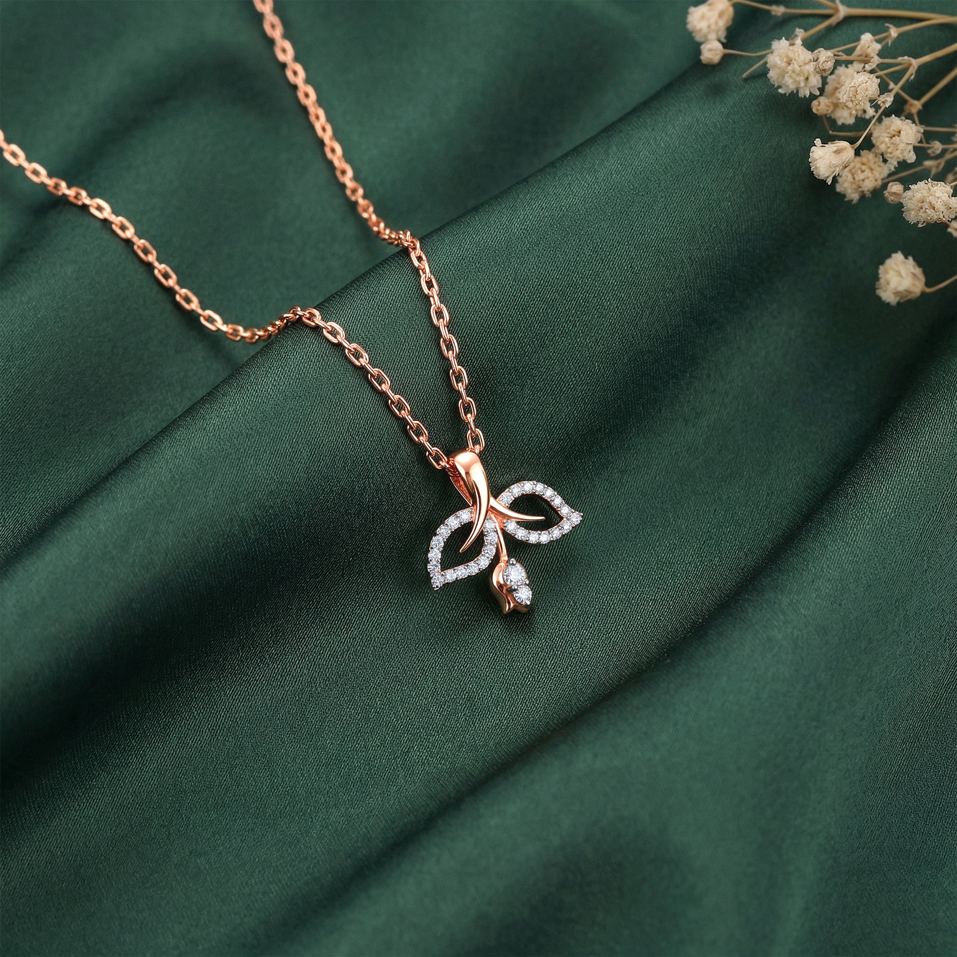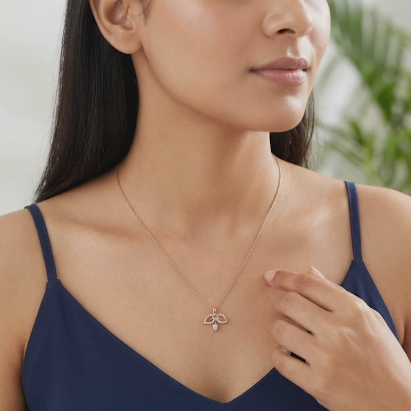 She is romantic, thoughtful, and drawn to designs that celebrate nature’s quiet beauty. This pure rose gold pendant features diamond-studded leaves with a rose bud, each highlighted with lab grown diamonds, creating a look that blooms with elegance. Try the exquisite lab grown diamond jewellery from Heer By GIVA today.