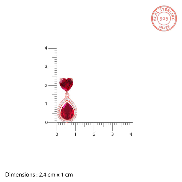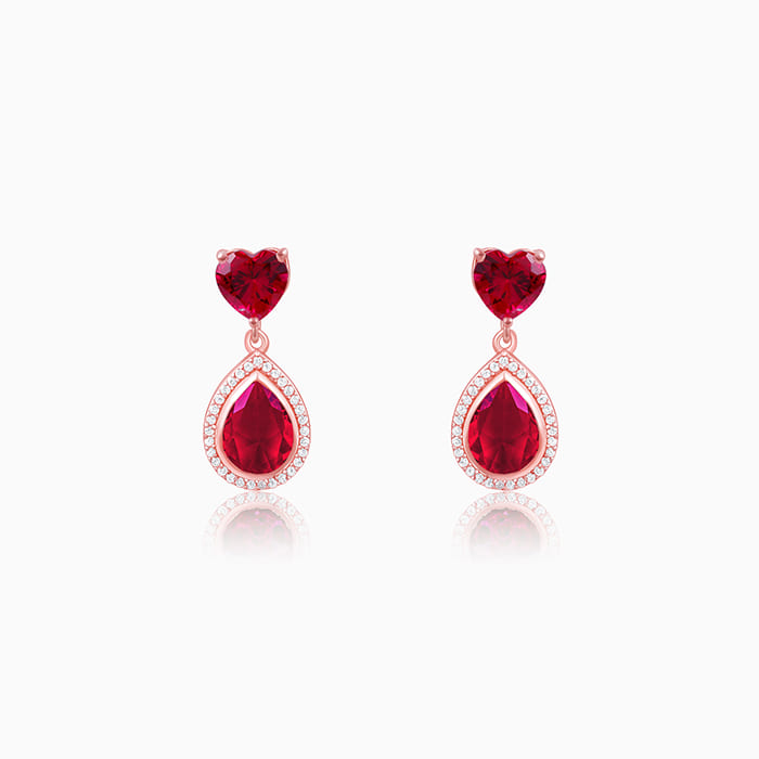 These rose gold earrings feature a pink coloured heart motif from which dangles a tear drop motif, studded with pink stone with a line of zircons layering it. Celebrate your moments of passion with GIVA’s Red Romance Collection.