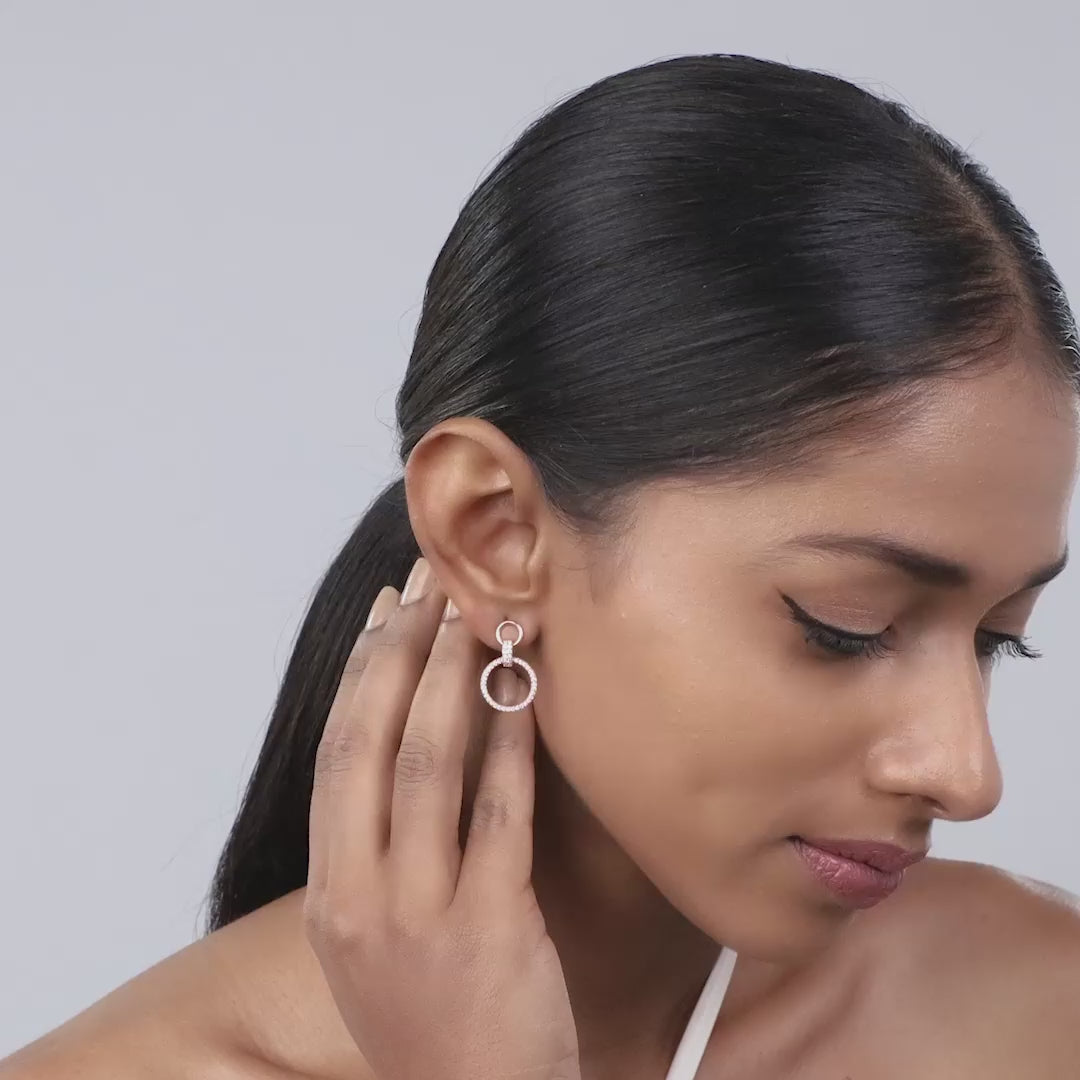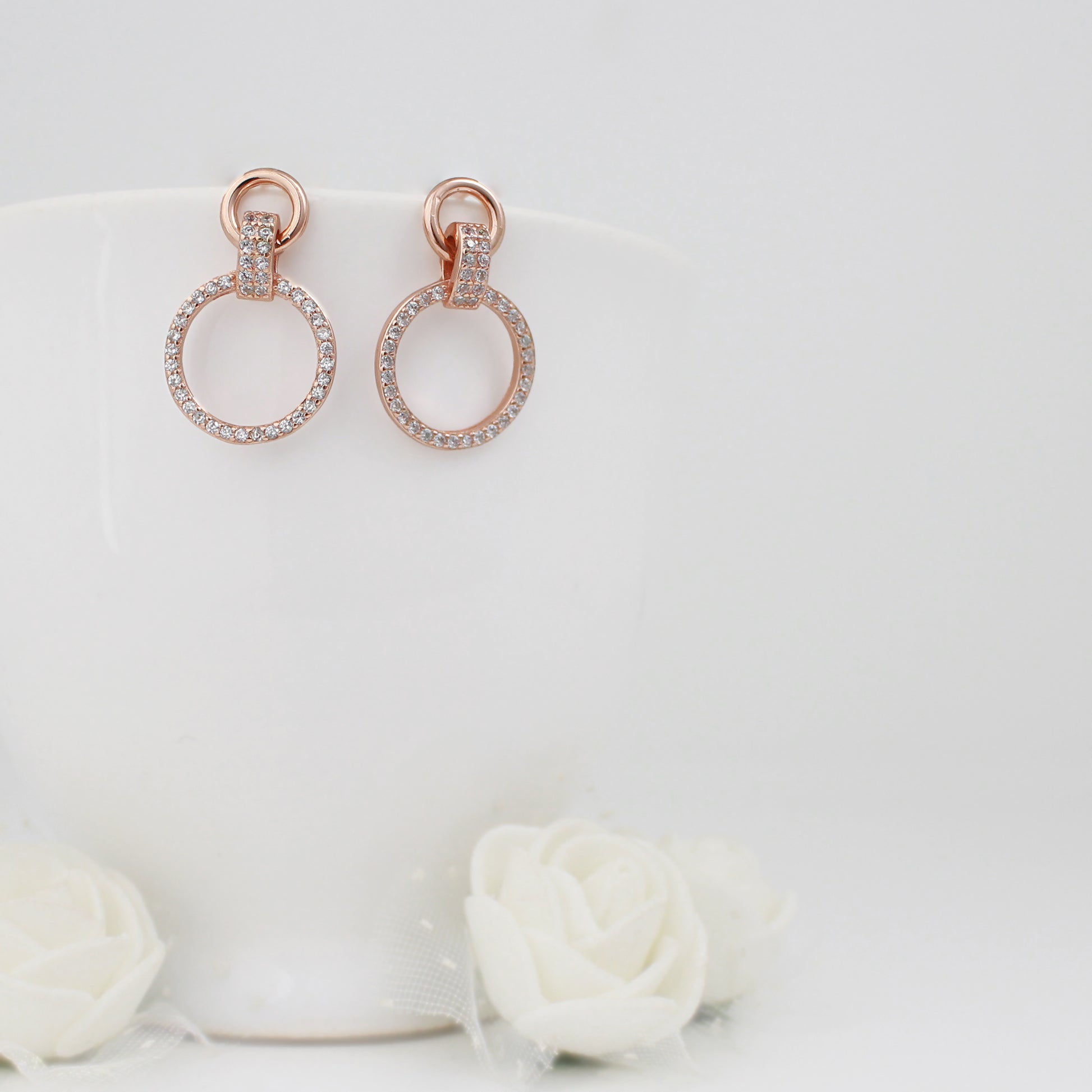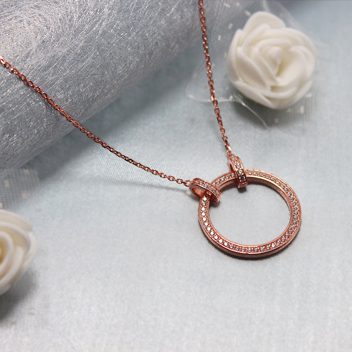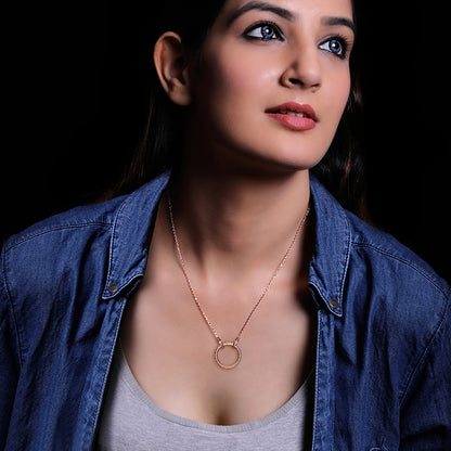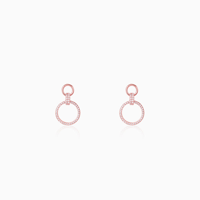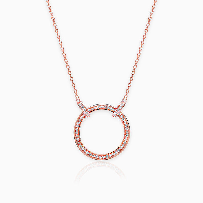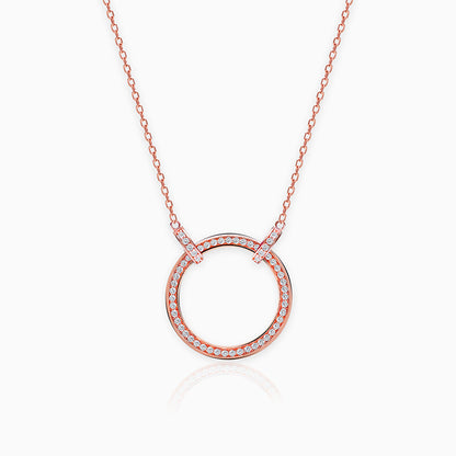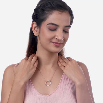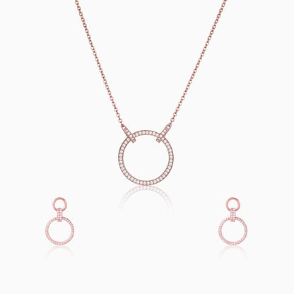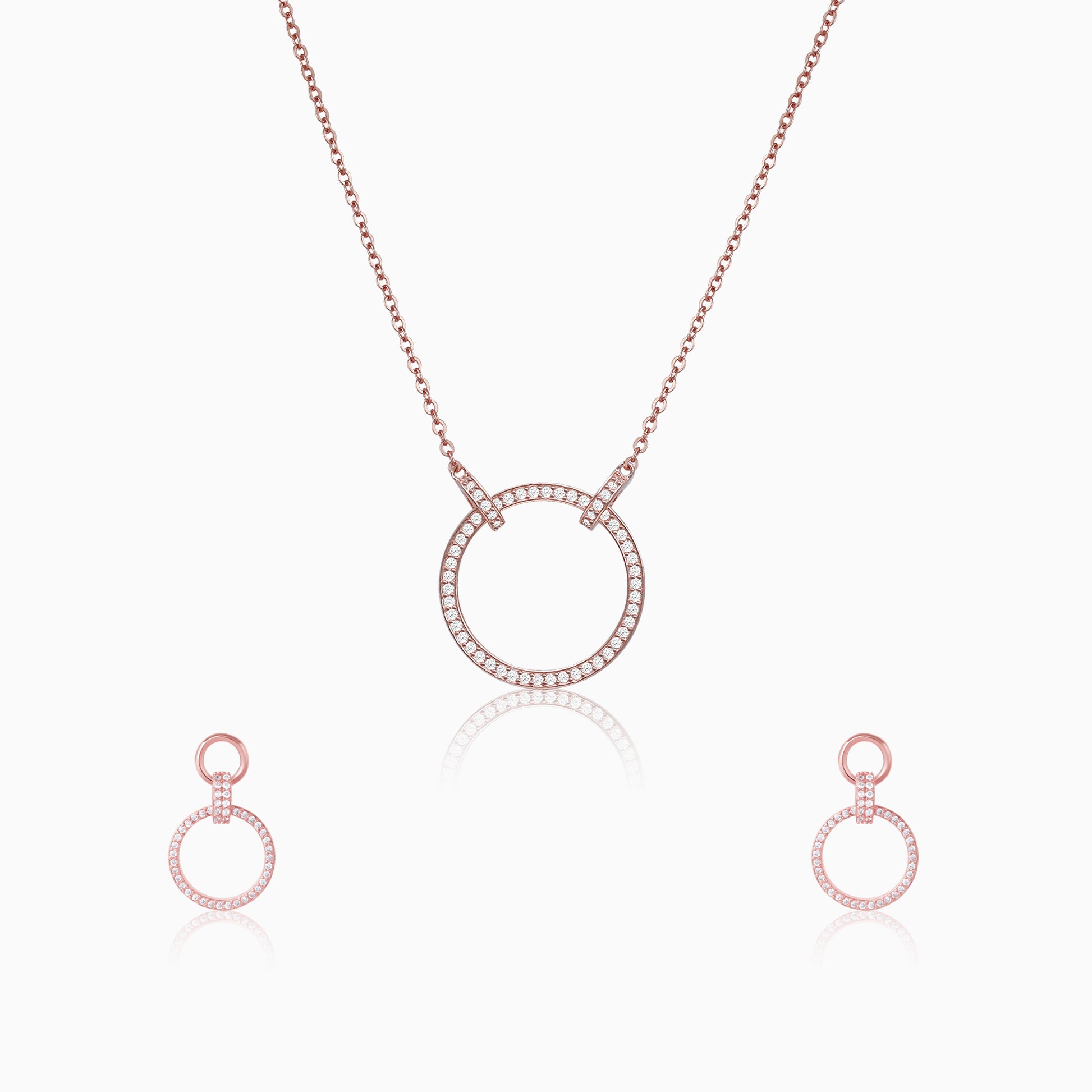 This pendant and earring set features a rose gold studded halo charm exuding grace and elegance with zircon-studded drop earrings.