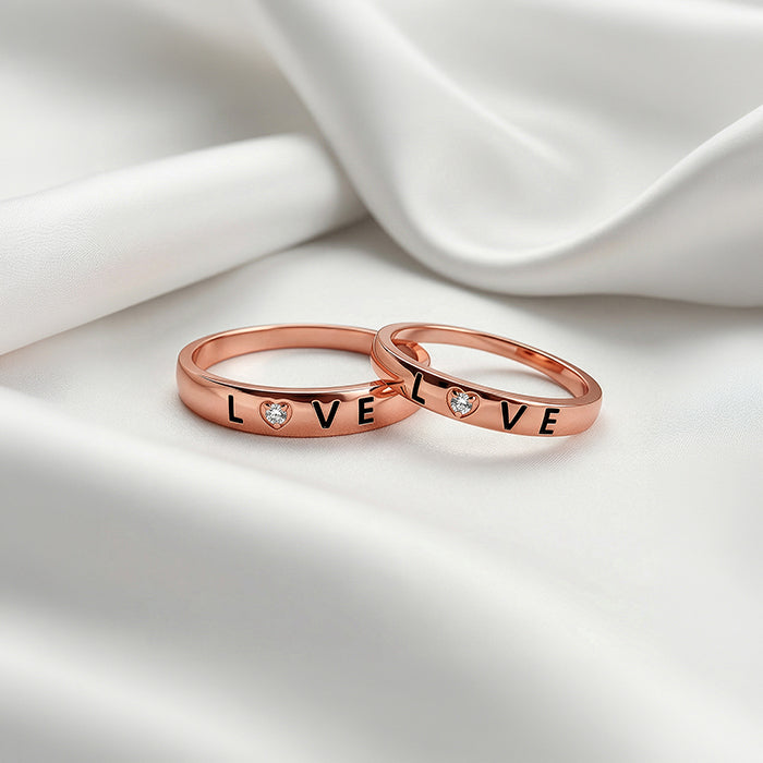 Rose Gold Love Letter Couple Rings