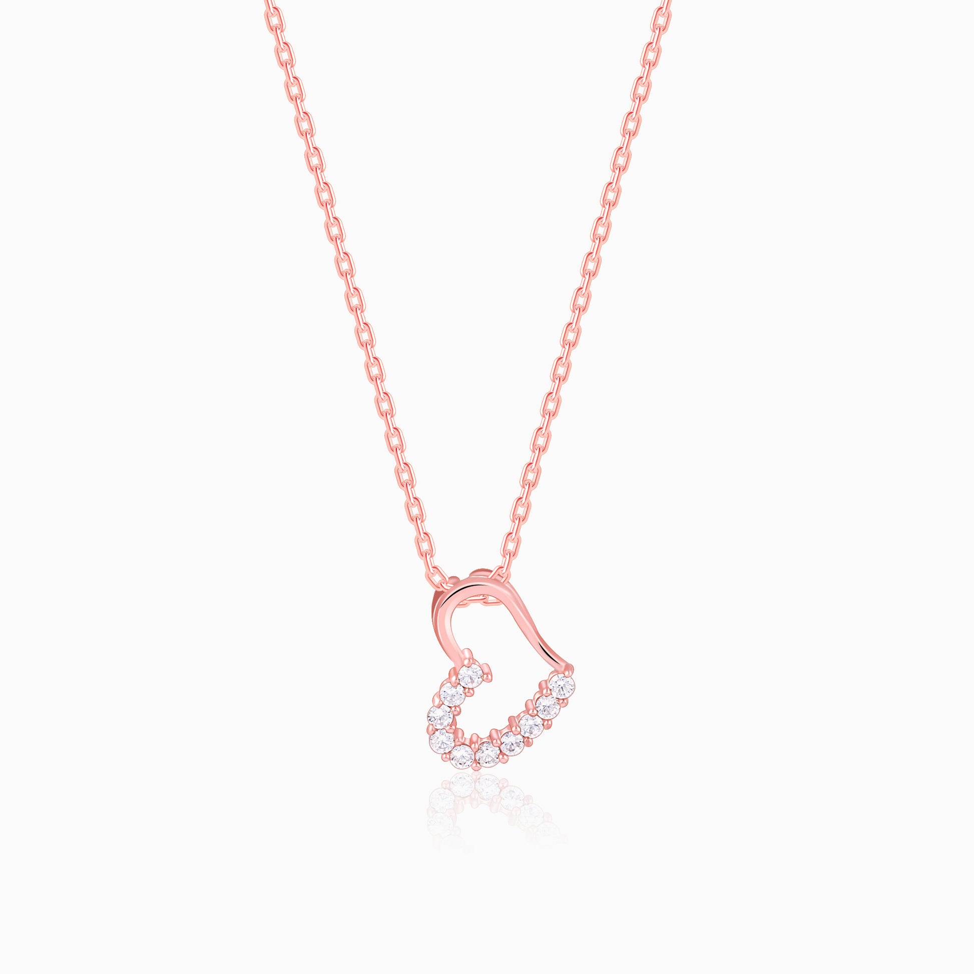 This rose gold plated pendant for women features a heart design partially studded with zircons. This pendant comes with a link chain.