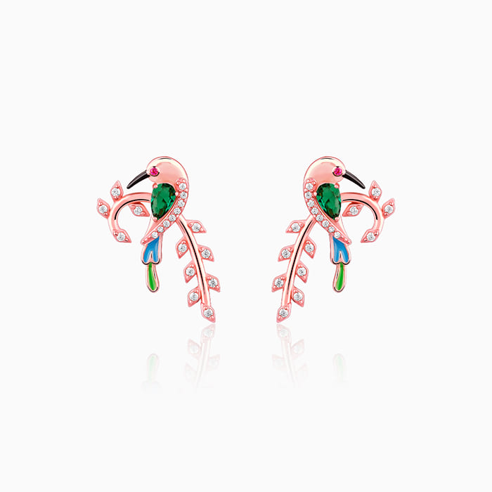These rose gold earrings feature a bird with coloured stones, enamel, and zircon. GIVA celebrates the migratory birds that visit India during Summer through our latest colourful collection called Wings of Wonder.
