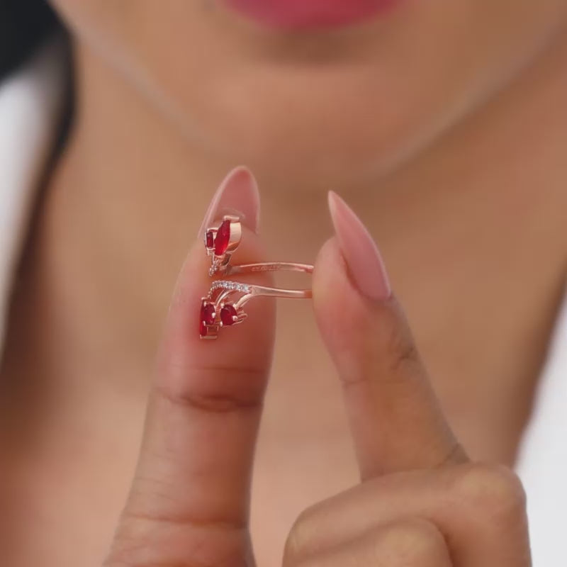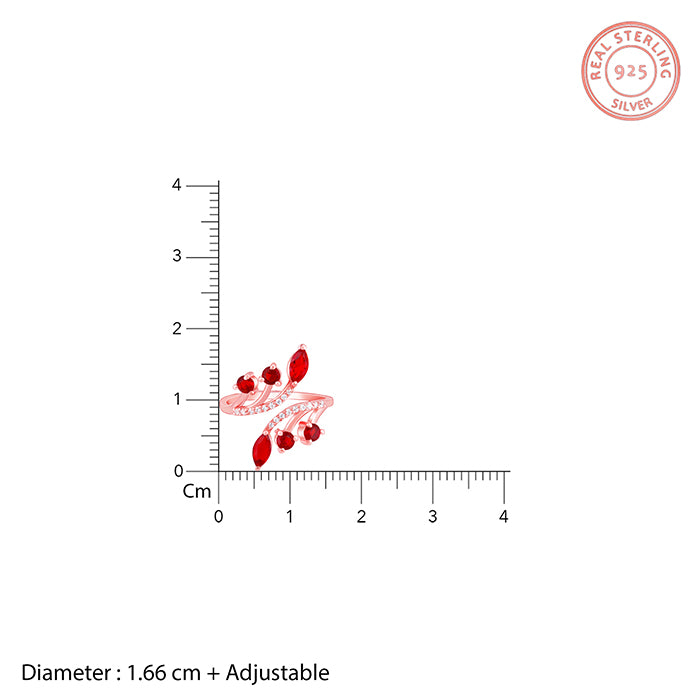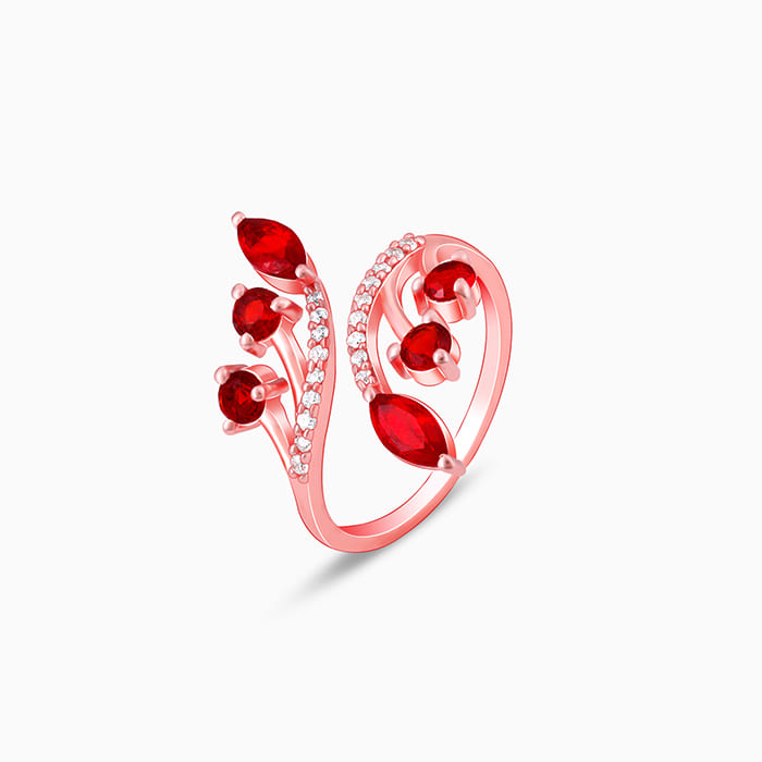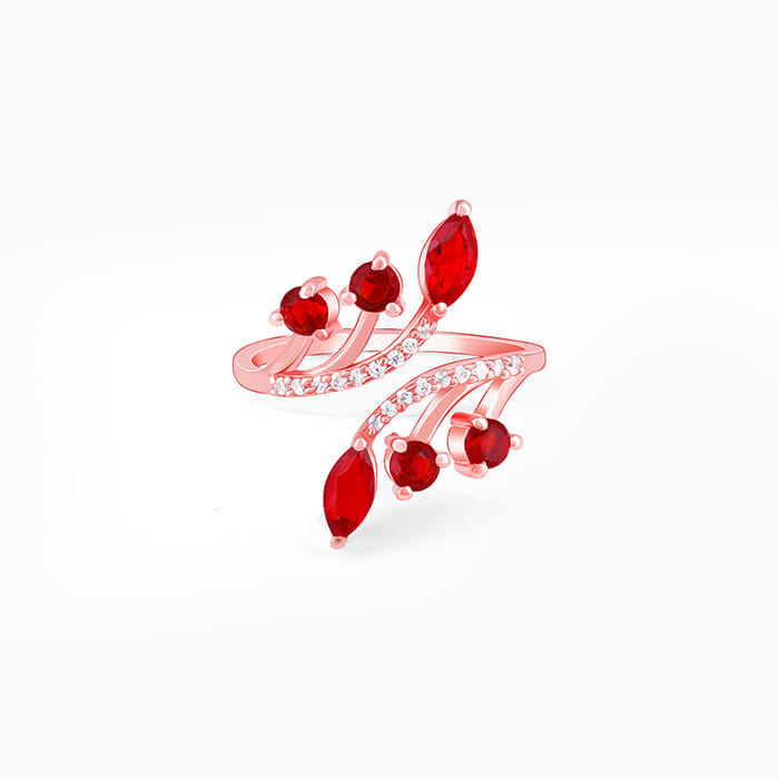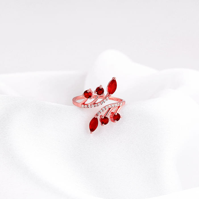 This rose gold open-ring features a branching design set with zircons and red stones. Celebrate your moments of passion with GIVA’s Red Romance Collection.