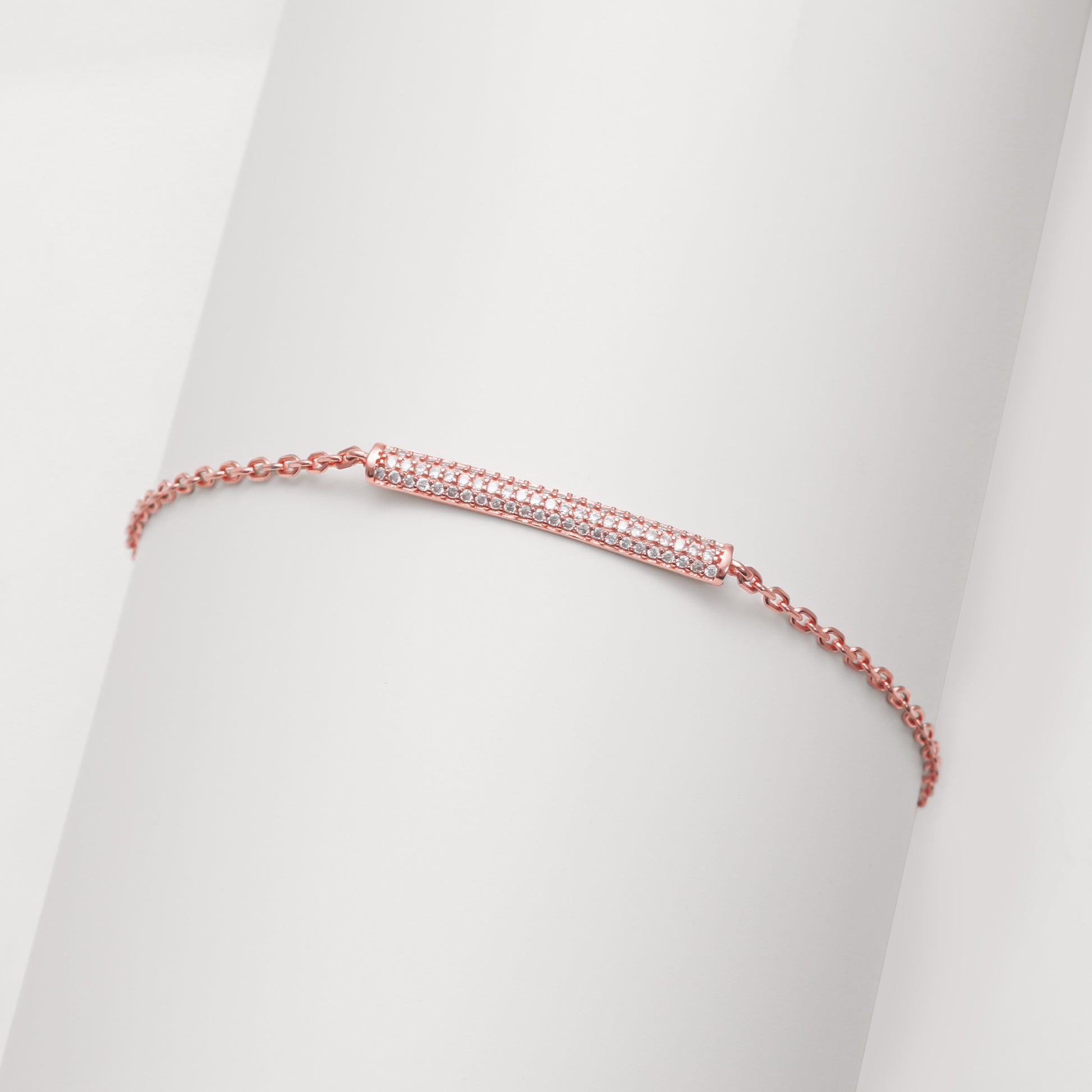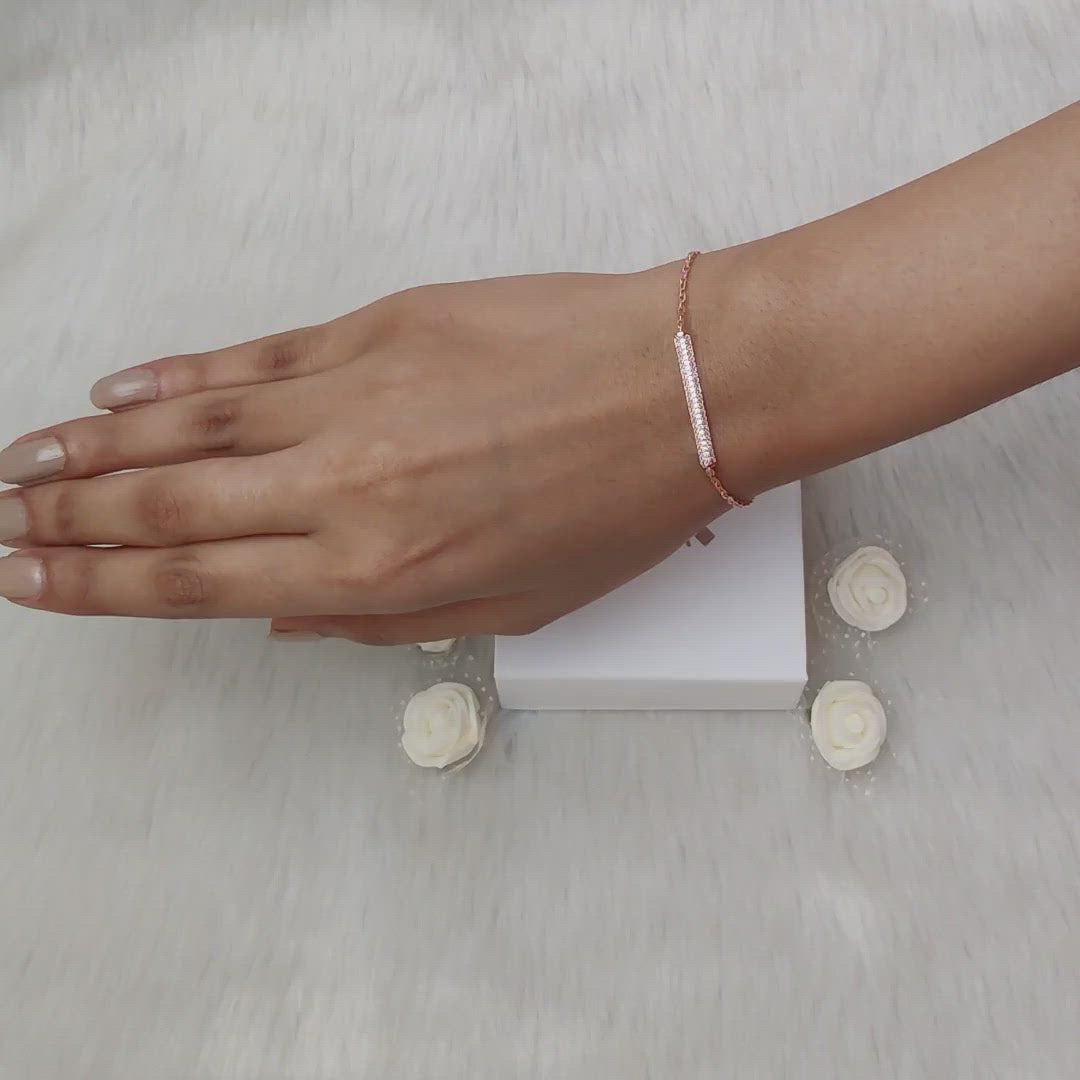 This Rose Gold Minimal Grace Bracelet is handcrafted with love, just for YOU. This is the chicest of beauties. The dainty rectangle plate is embellished with zircons and the rose gold is a class apart.