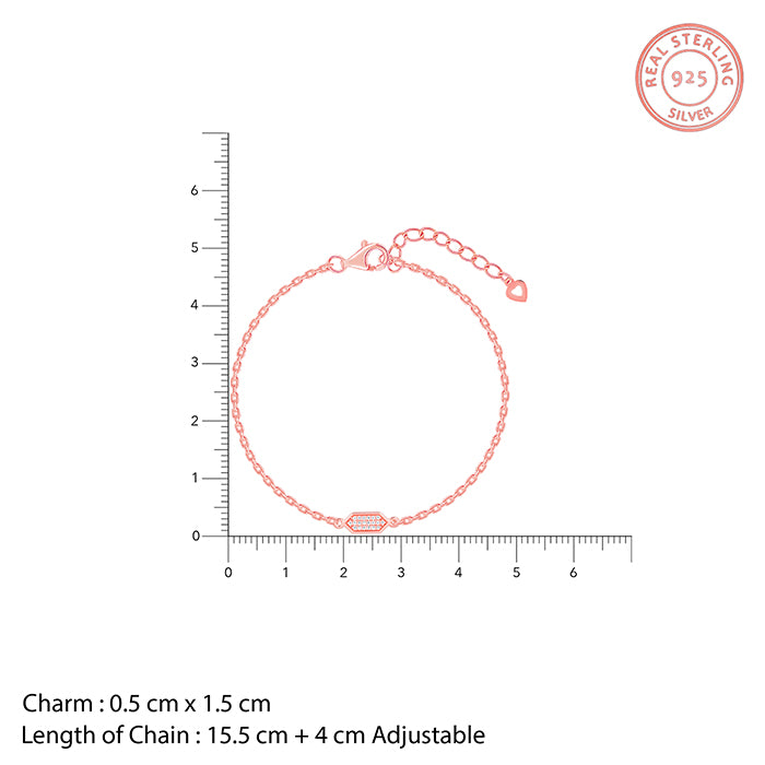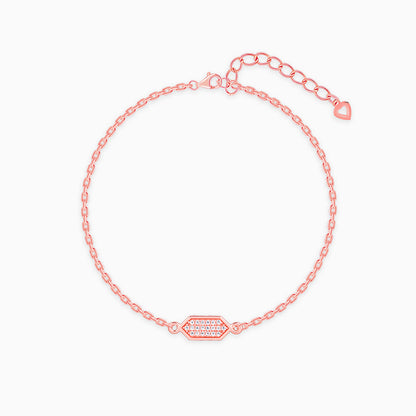 This rose gold plated bracelet for women features a hexagonal motif set with zircons.