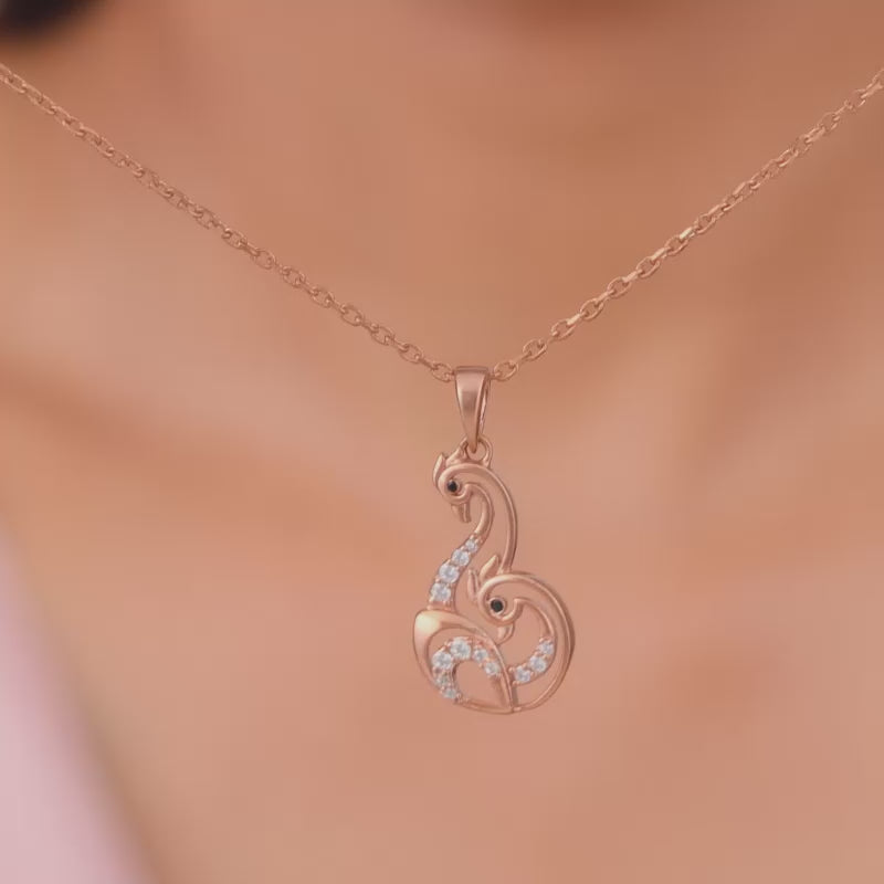 This rose gold pendant with a link chain features a dual peacock motif studded with zircons. Celebrate the timeless beauty of Indian textiles with GIVA's latest 'Magic of Tradition' collection. Wear and celebrate tradition, anytime.