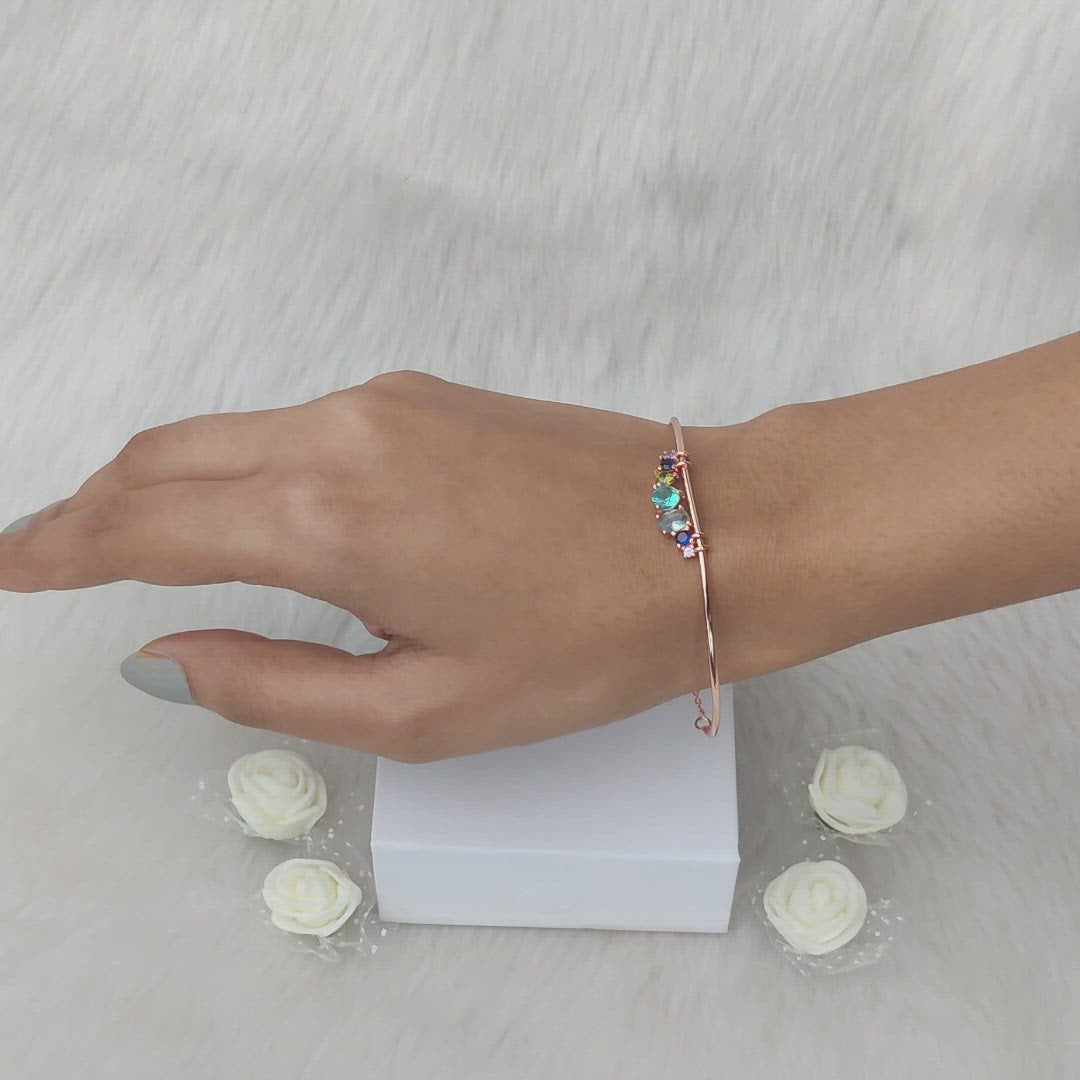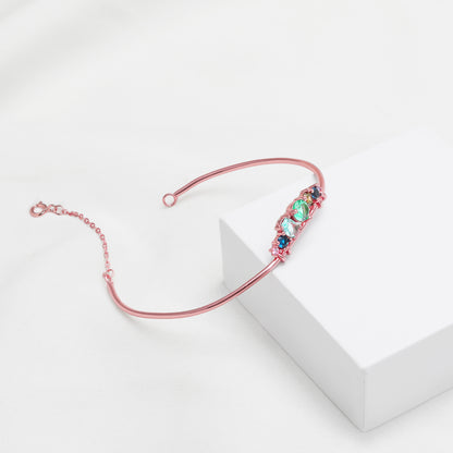 This Rose Gold Multi-Hued Tiara Bangle Bracelet is handcrafted with love, just for YOU. The bracelet is made just as its namesake, a tiara, and the multi-hued stones on top are a perfect add-on. This beauty is all about royal grace.