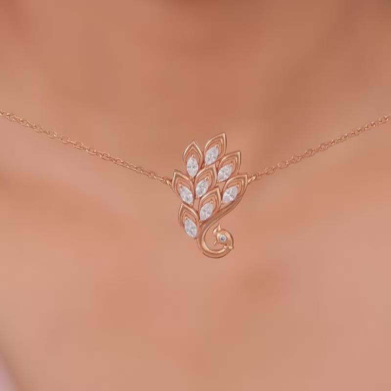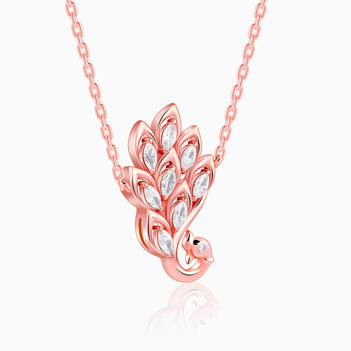 This rose gold necklace features a peacock motif studded with zircons. Celebrate the timeless beauty of Indian textiles with GIVA's latest 'Magic of Tradition' collection. Wear and celebrate tradition, anytime.