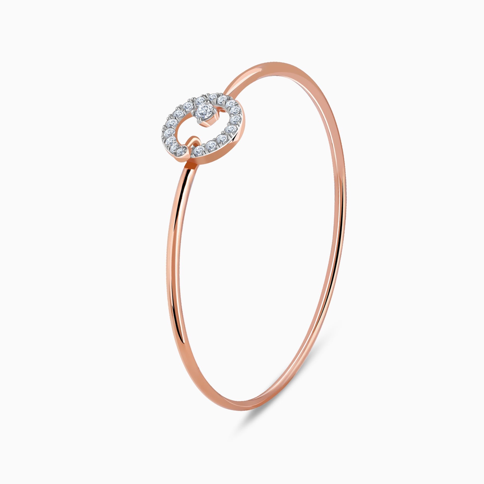 Like a whispered promise, she is free yet deeply loved. This rose gold bracelet captures her spirit, a brilliant symbol of a love that will last forever. This pure gold bangle for women features a diamond-studded oval at its centre. The bracelet has opens easily with the opening end sporting a single lab grown diamond. Discover exquisite lab grown diamond jewellery from Heer By GIVA today.