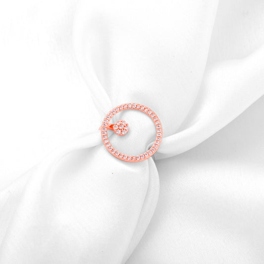 These rose gold earrings feature an intricate design studded with zircons, with a zircon in a droplet design dangling below.