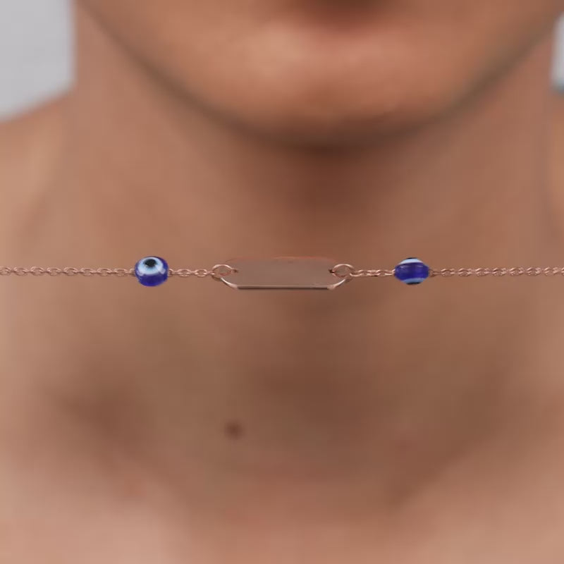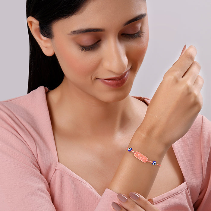 Wear this personalised bracelet like your daily dose of “good vibes only,” with your name shining right beside the evil eye bead.