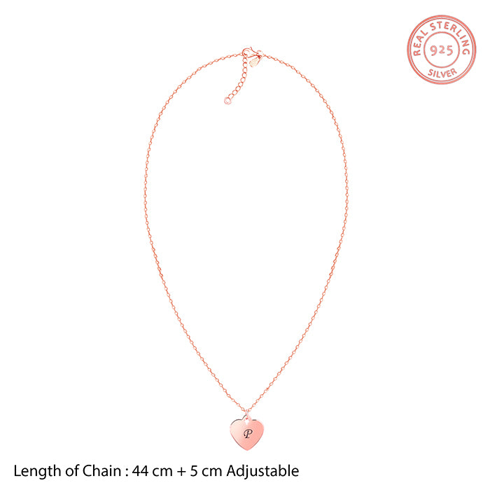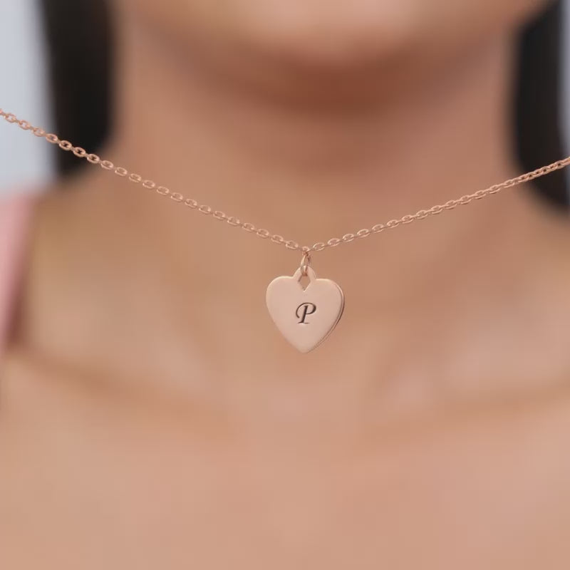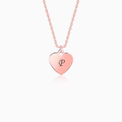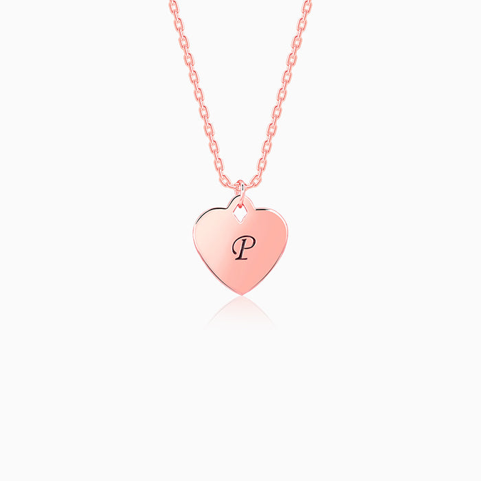 This rose gold personalised pendant for women features a heart motif with an initial of your choice engraved on it.