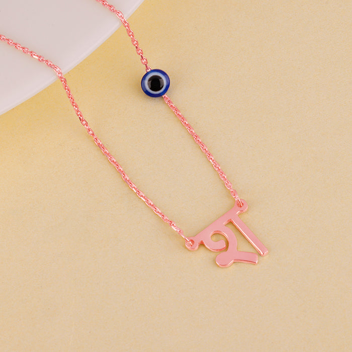 Rose Gold Personalised Hindi Initial Evil Eye Necklace
