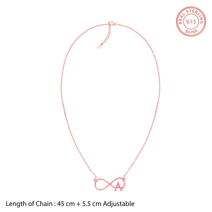 Sleek meets sentimentalism in this stunning personalised rose gold initial necklace for women. Features a dainty infinity charm fused with your chosen initial. The lightweight link chain keeps it easy to wear.