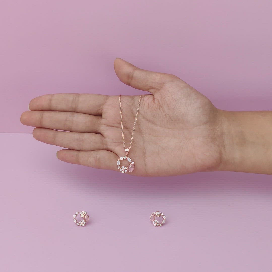 The Rose Gold Pink Drop Wreath Pendant Set is inspired by the most special moments of life that make it all worth it.