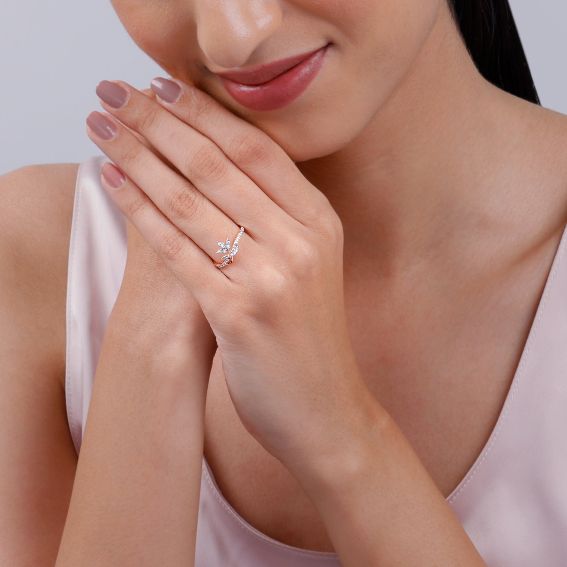 Rose Gold Pure Leaf Lab Grown Diamond Ring