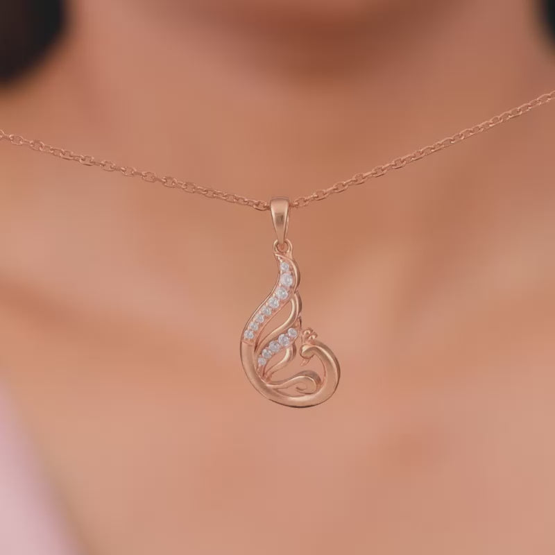 This rose gold pendant with a link chain features a peacock motif studded with zircons. Celebrate the timeless beauty of Indian textiles with GIVA's latest 'Magic of Tradition' collection. Wear and celebrate tradition, anytime.