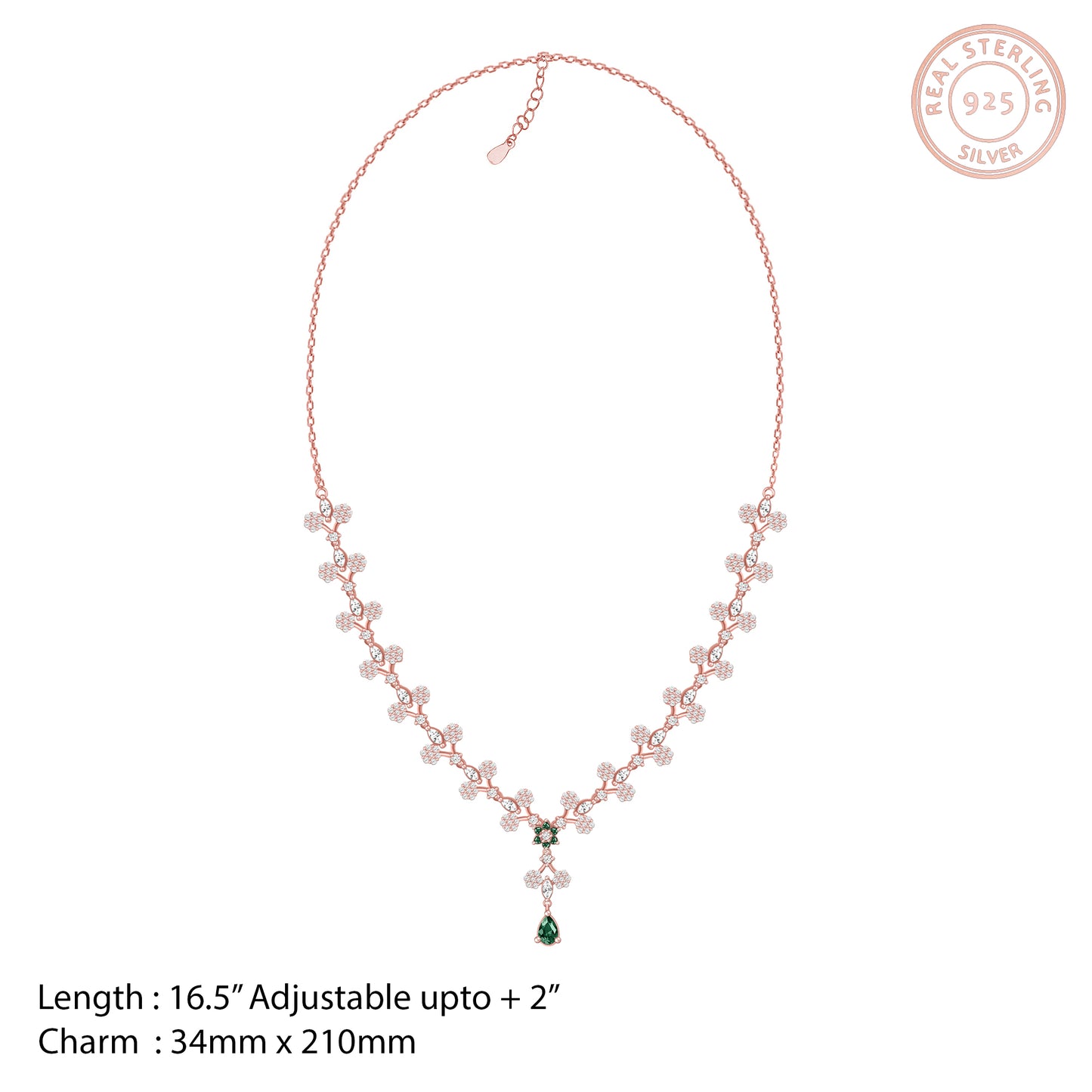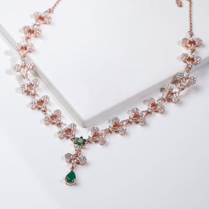 Rose Gold Regal Emerald Drop Necklace is handcrafted with love, just for YOU. This regal beauty is embellished with zircons on a Rose Gold base and the final touch is added with the emerald drop.