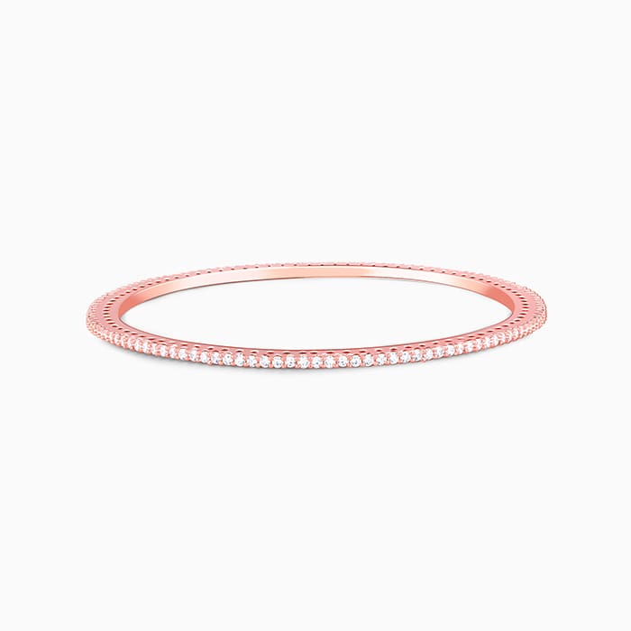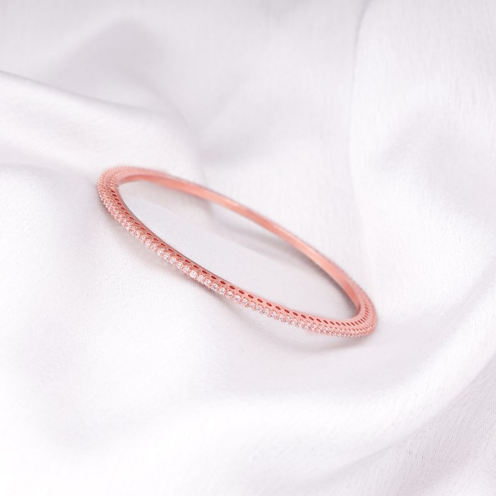 This bangle features a sophisticated design with zircons set all around.