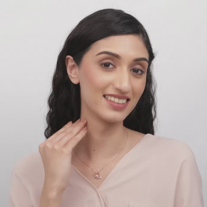 The Rose Gold Rose In Heart Pendant with Link Chain is inspired by the time when he gave you the first rose.