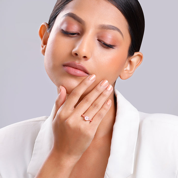 This rose gold womens ring features a natural, circular-shaped rose quartz stone at the centre, set on a split shank band. From nature’s heart to yours - GIVA's natural Gemstone Collection makes every occasion special, whether you’re gifting a loved one or treating yourself.