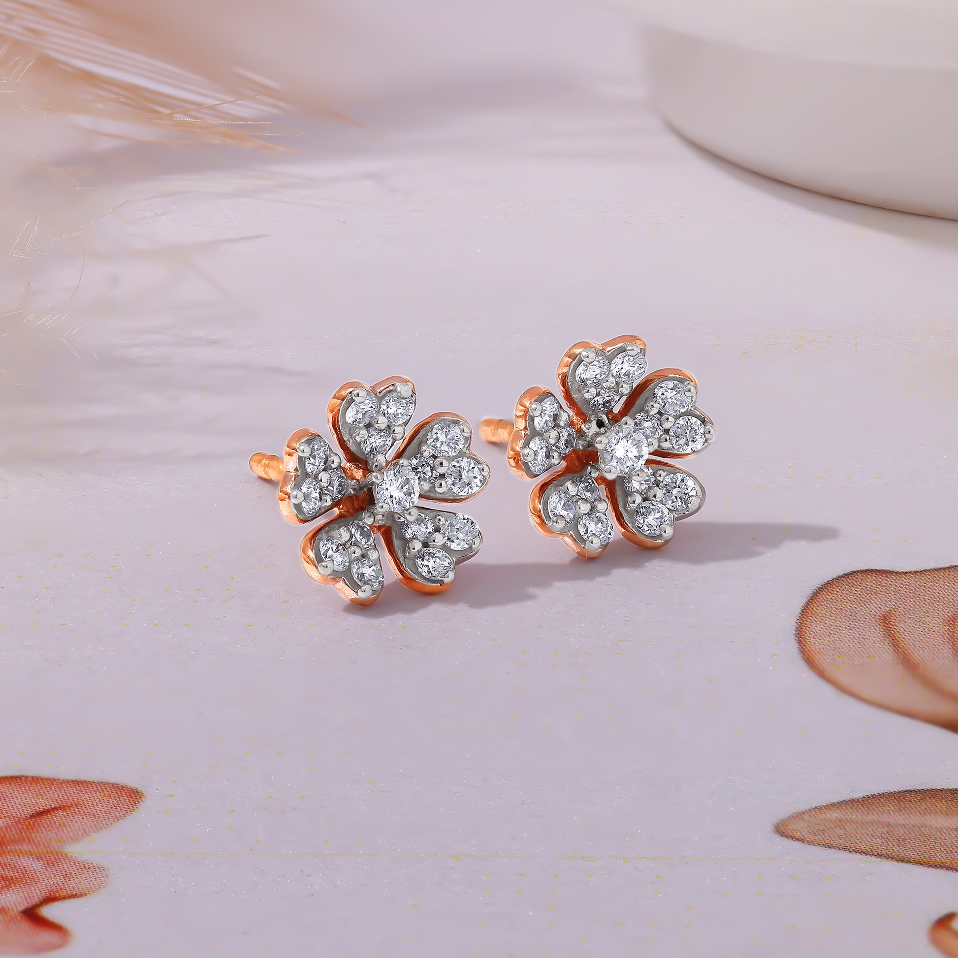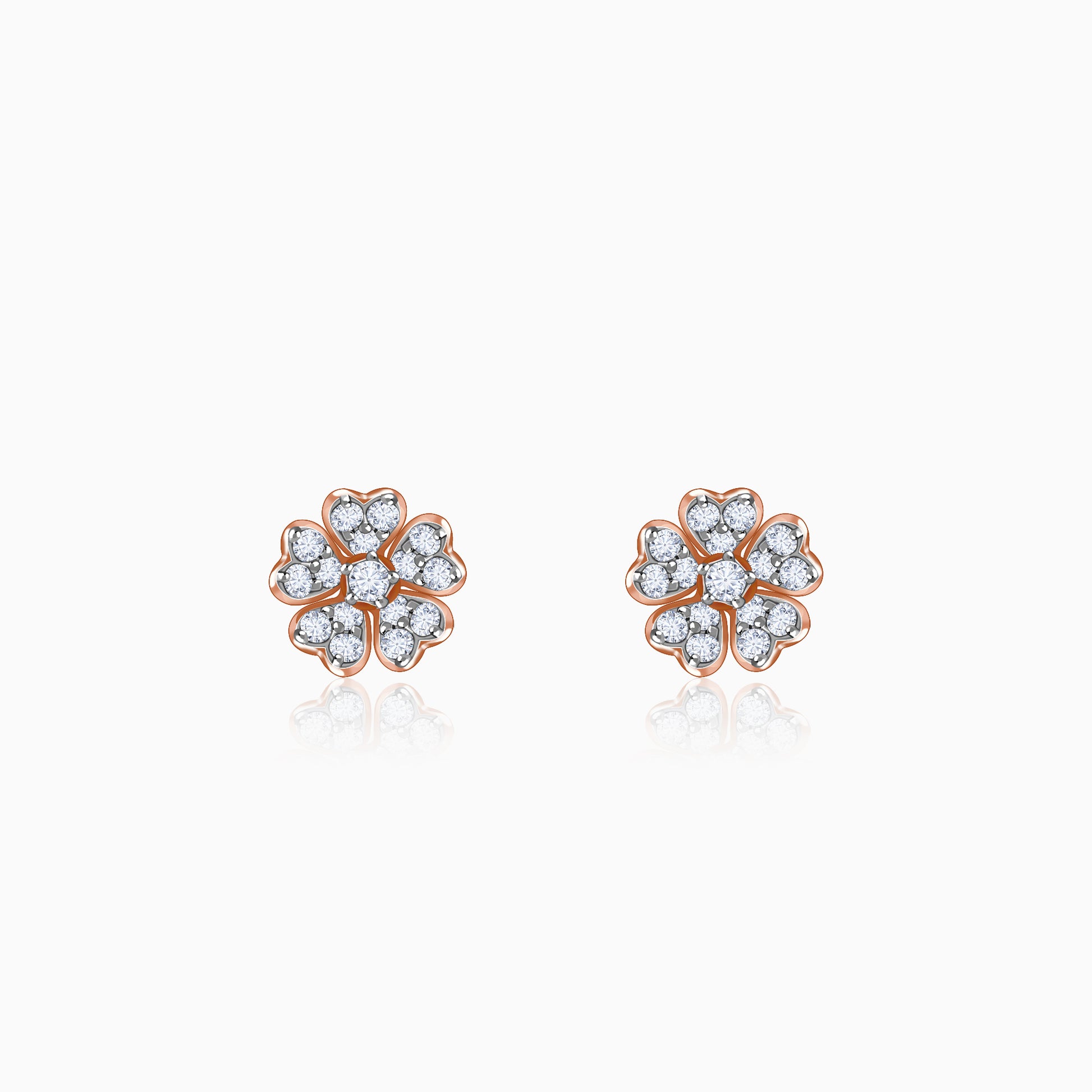 These rose gold earrings feature a floral motif defined with lab grown diamonds, created for the woman who appreciates soft structure and thoughtful detailing. Try the exquisite lab grown diamond jewellery from Heer By GIVA today.