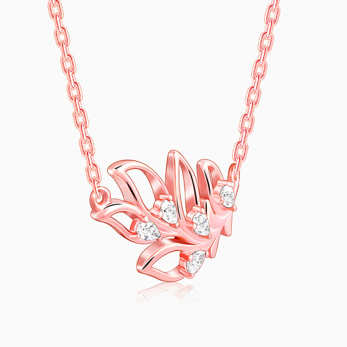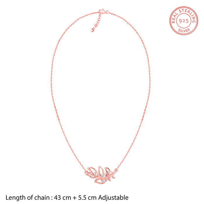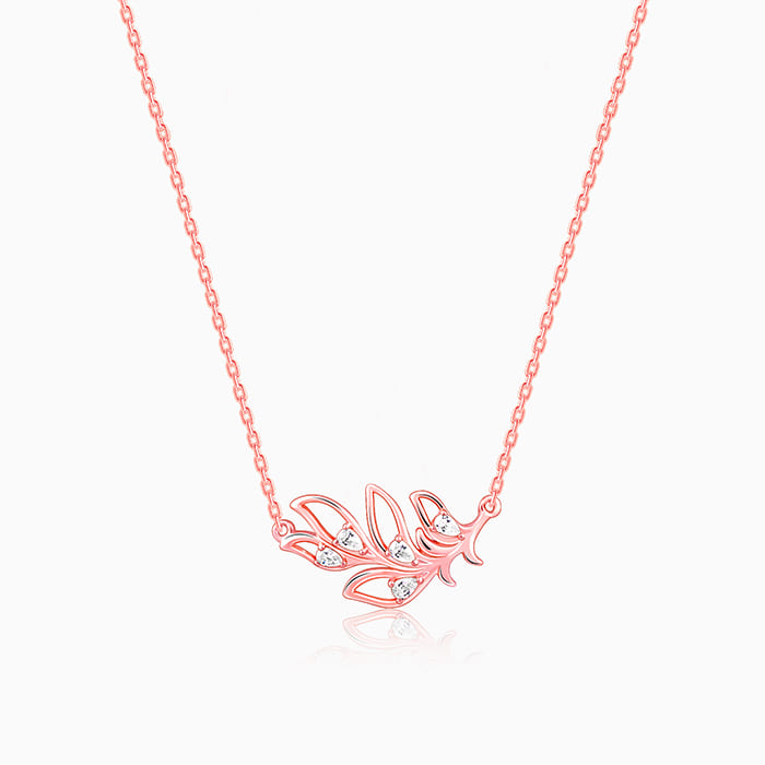 This rose gold necklace features a feather motif studded with zircons. Celebrate the timeless beauty of Indian textiles with GIVA's latest 'Magic of Tradition' collection. Wear and celebrate tradition, anytime.