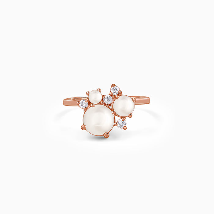 Three pearls sit at the heart of the ring, separated by glimmering zircons that add sparkle in between. An elegant design that feels both classic and modern, full of feminine charm. Barkha Singh x GIVA brings to you the Glow in Motion collection that celebrates CNC craftsmanship for the first time in silver.