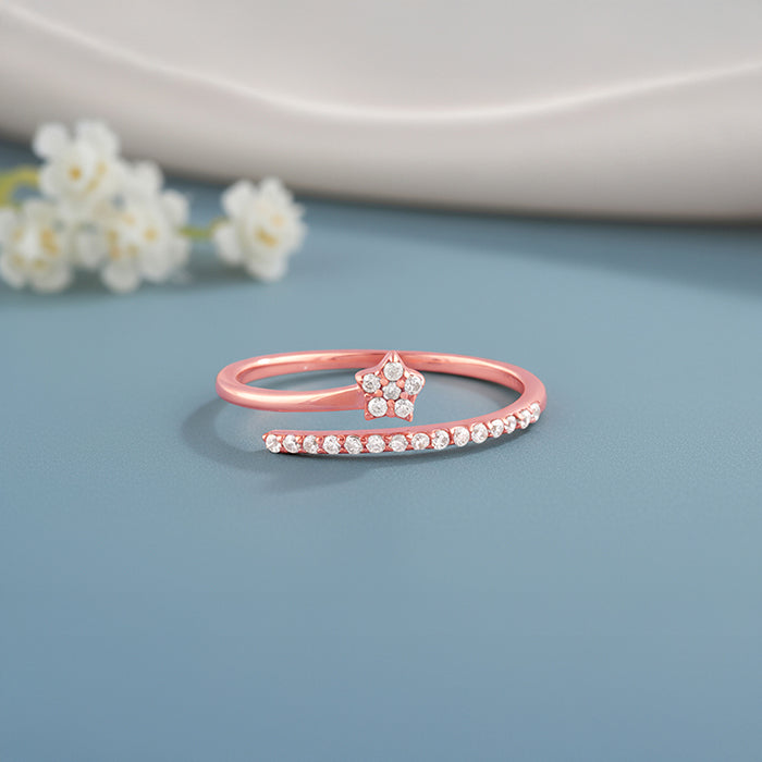 Chase every dream with the sparkle of this dainty rose gold plated ring. Designed with a zircon-studded shooting star...