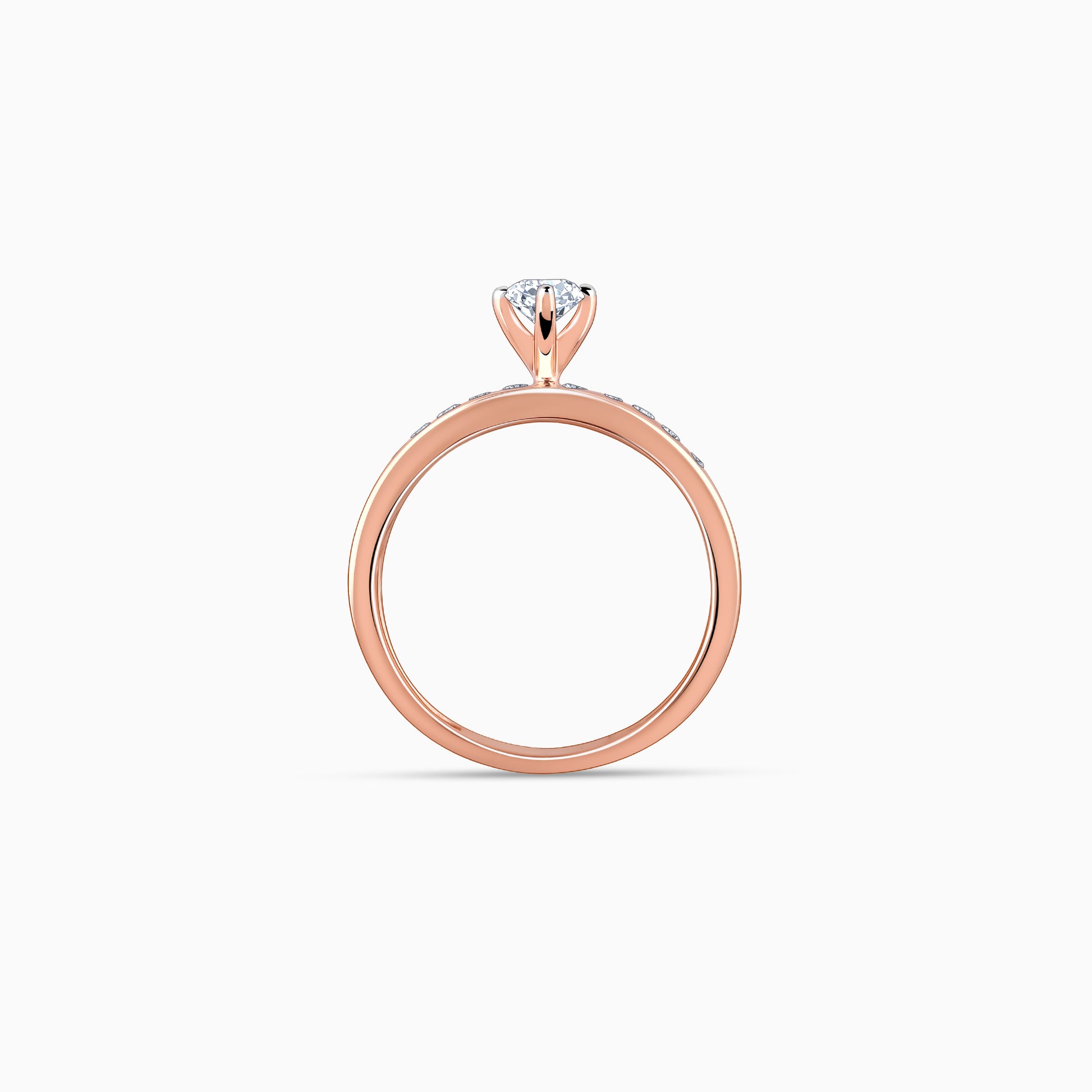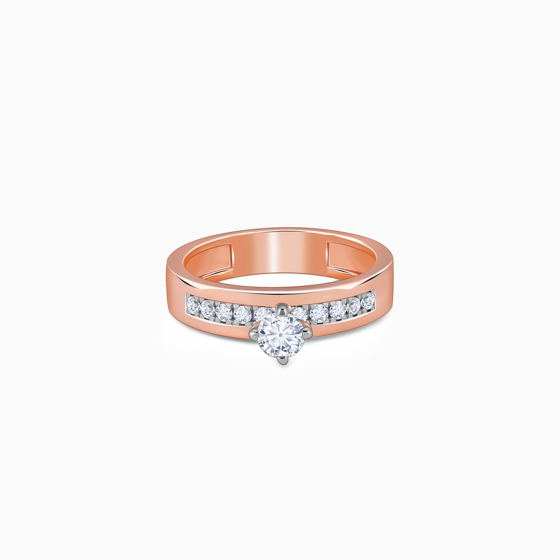 This pure rose gold ring for women showcases a row of lab-grown diamonds in a channel setting with a single diamond elegantly set at the centre.