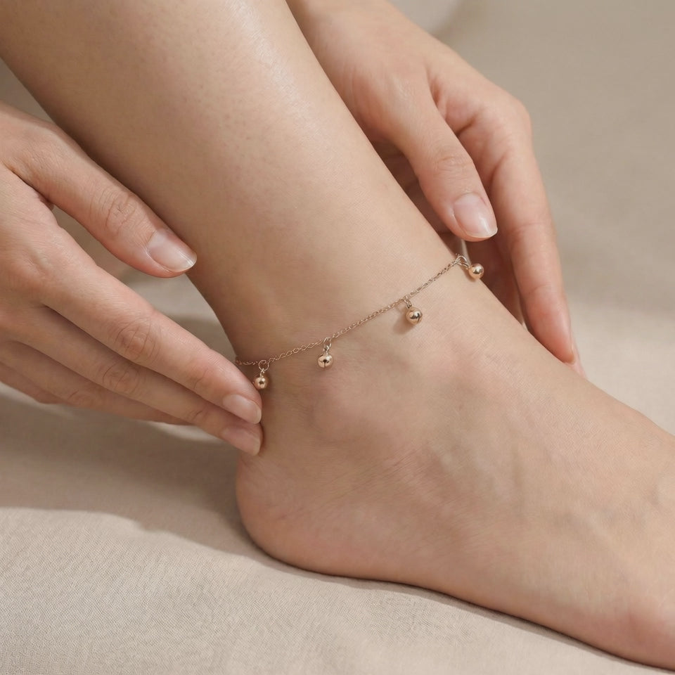 Sleek, luminous, and designed with subtle bead detailing, while the adjustable chain glimmers with a cute crystal. This piece brings a polished glow to your every step. It’s minimal enough for daily wear, yet striking enough to feel special.