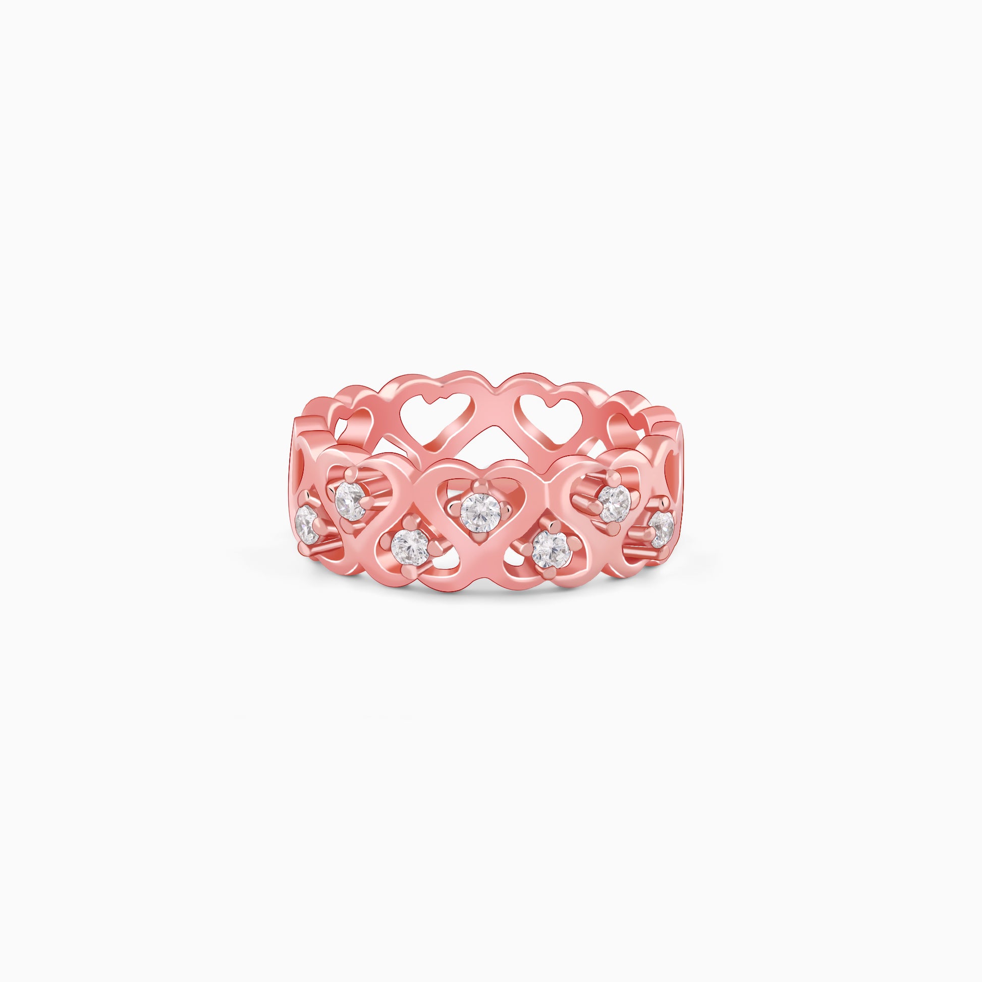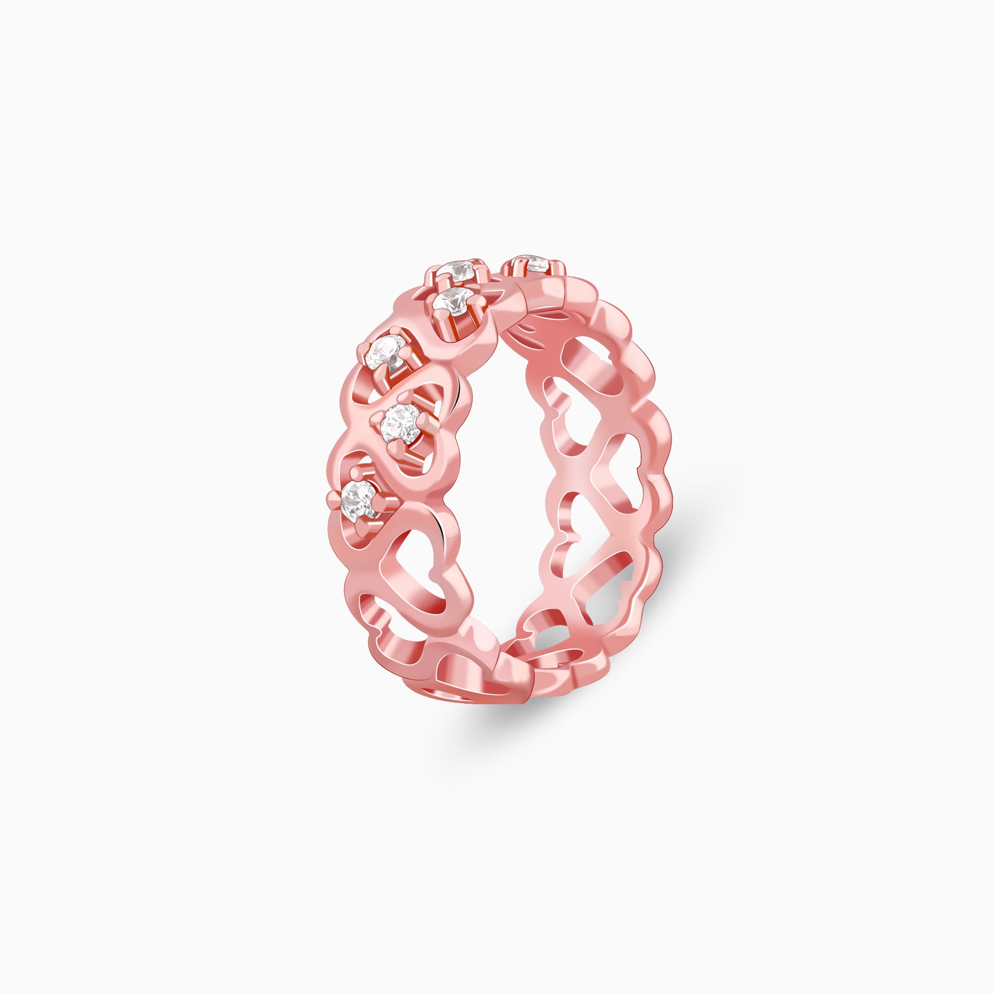 Gift a moment that speaks louder than words. A rose gold heart-shaped ring, where love is etched in every curve and a sparkling zircon at its centre captures the brilliance of your bond.