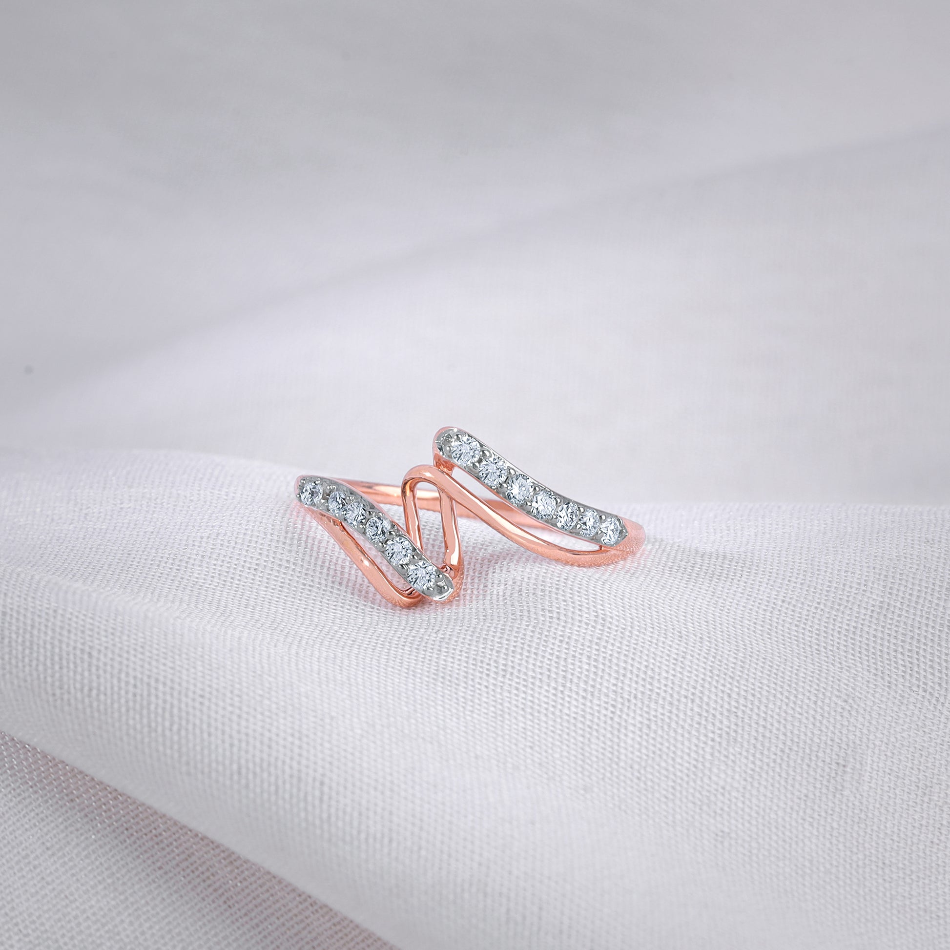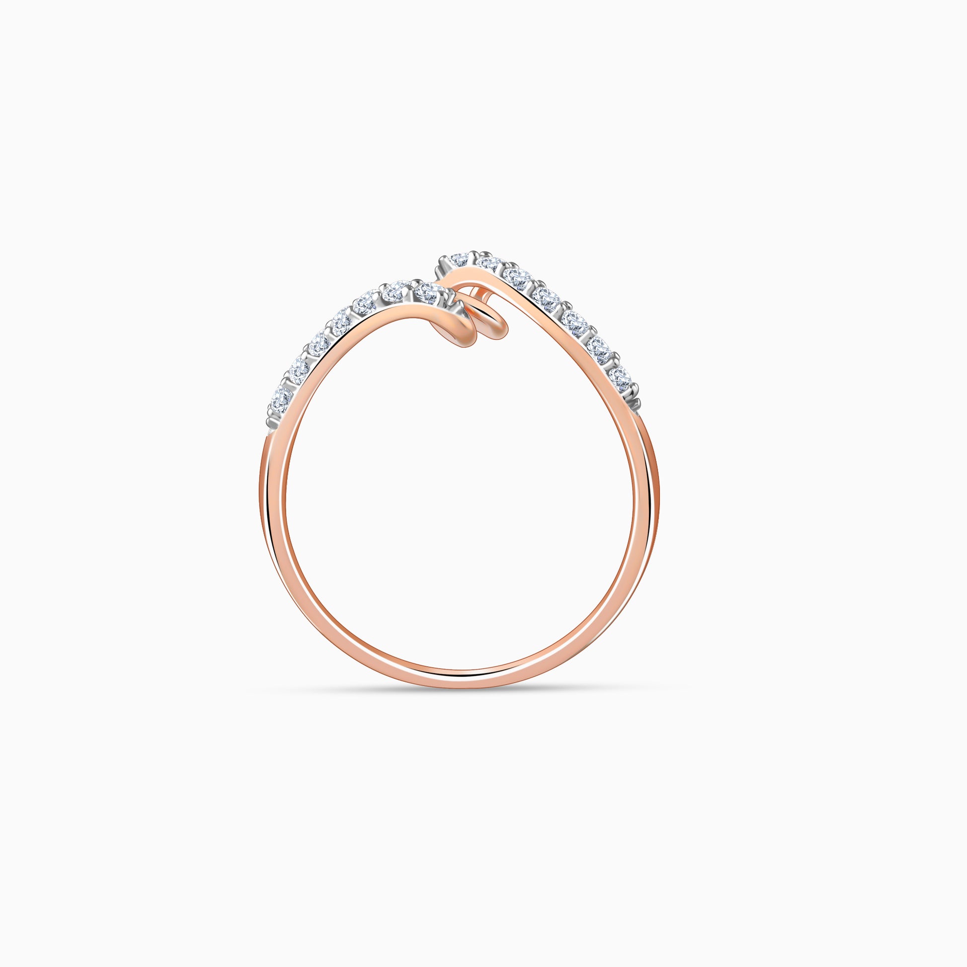 This pure rose gold ring for women features a dual-layer spiral design, with one spiral set in lab grown diamonds.