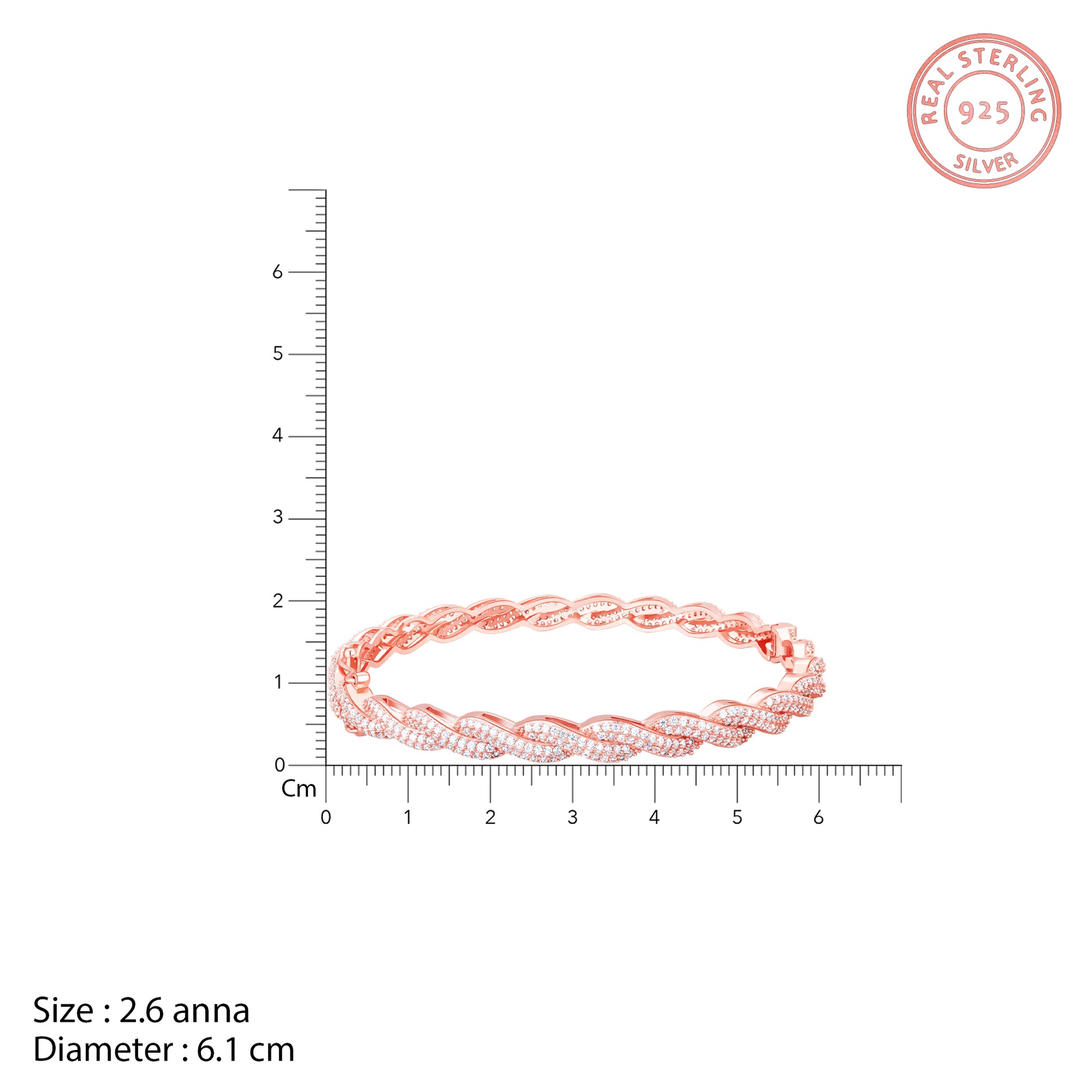 The Rose Gold Spiral Splendour Bangle is inspired by love's embrace, where two souls find eternal connection, entwined in a symphony of love and devotion.