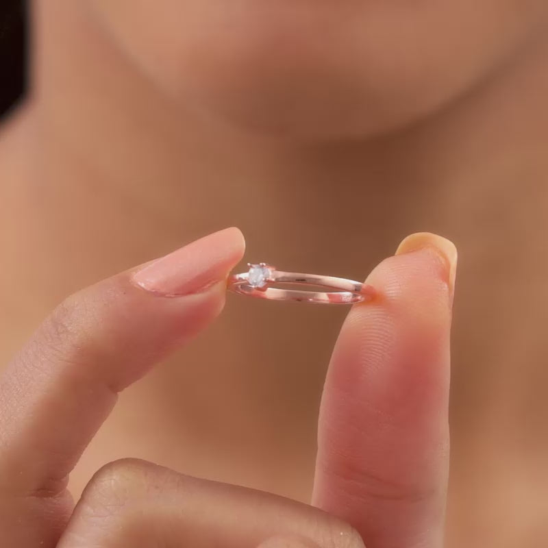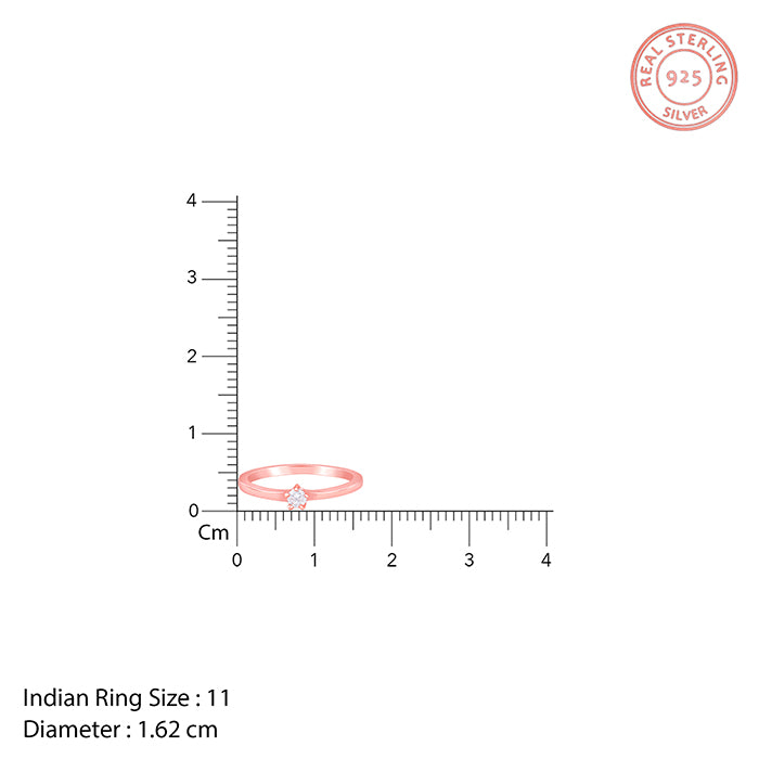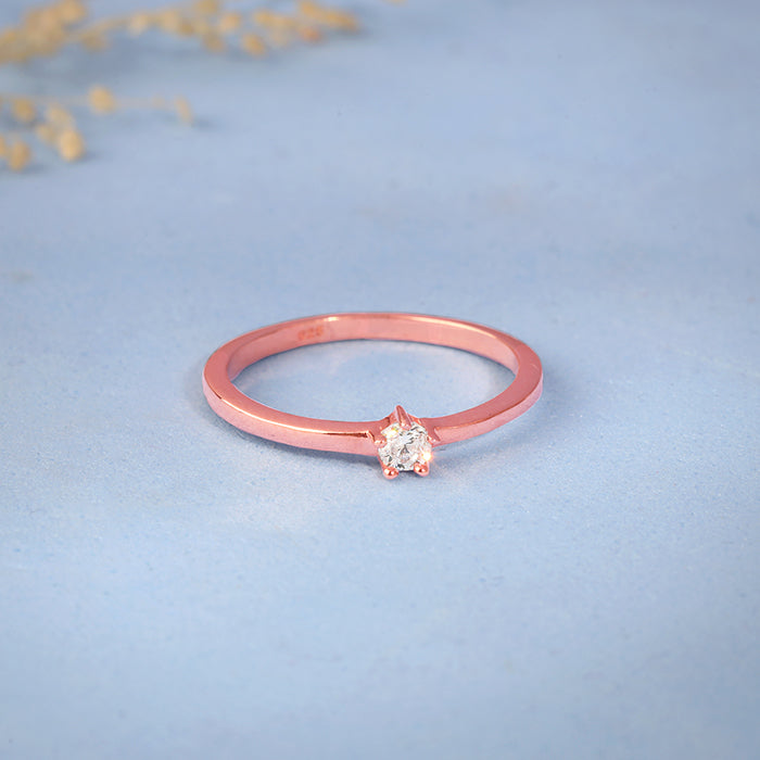 This rose gold plated ring for women features a plain band set with a small zircon at the centre.