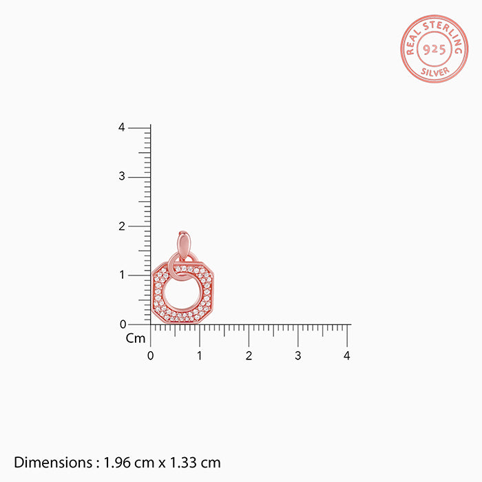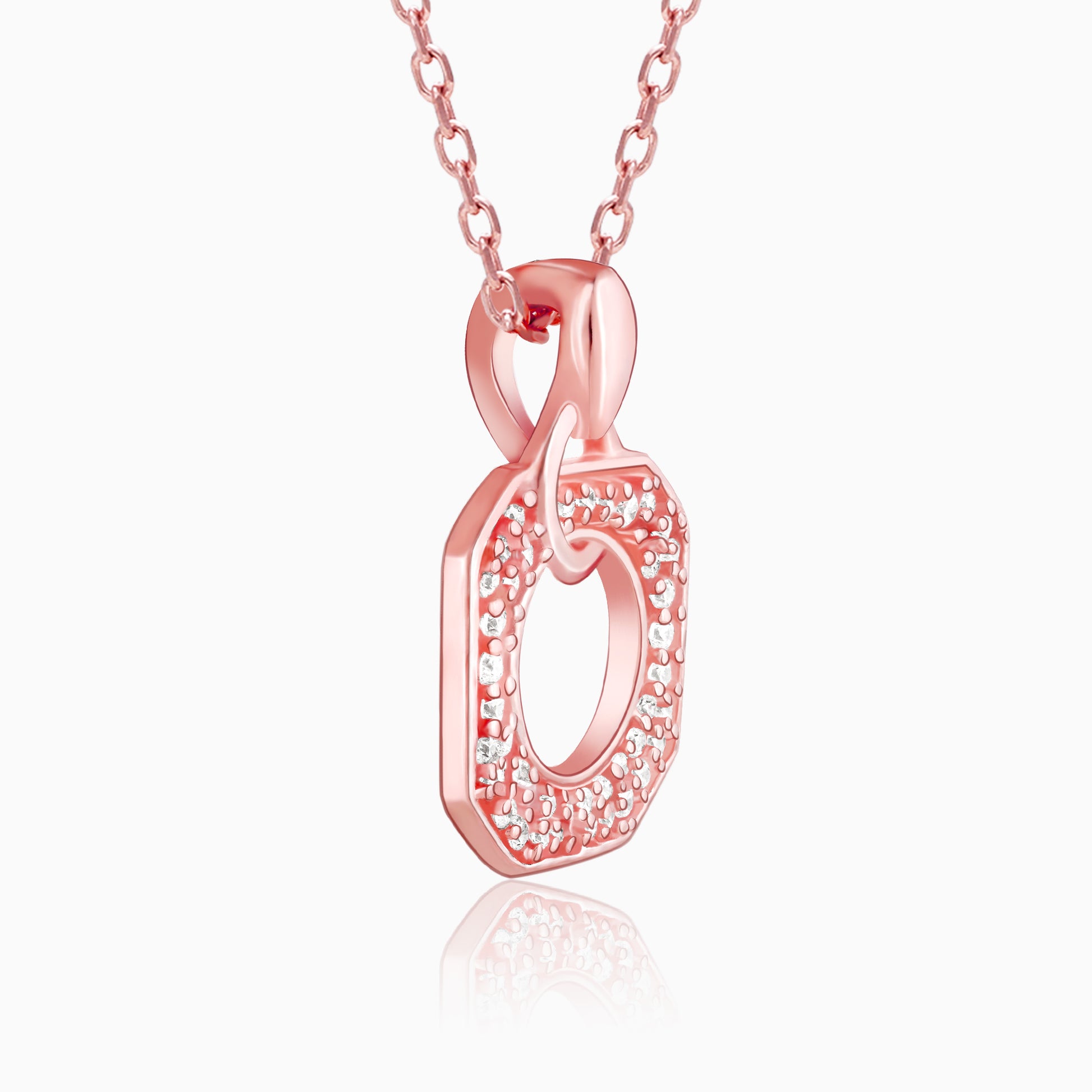 The Rose Gold necklace has a zircon studded octagonal pendant in a link chain.