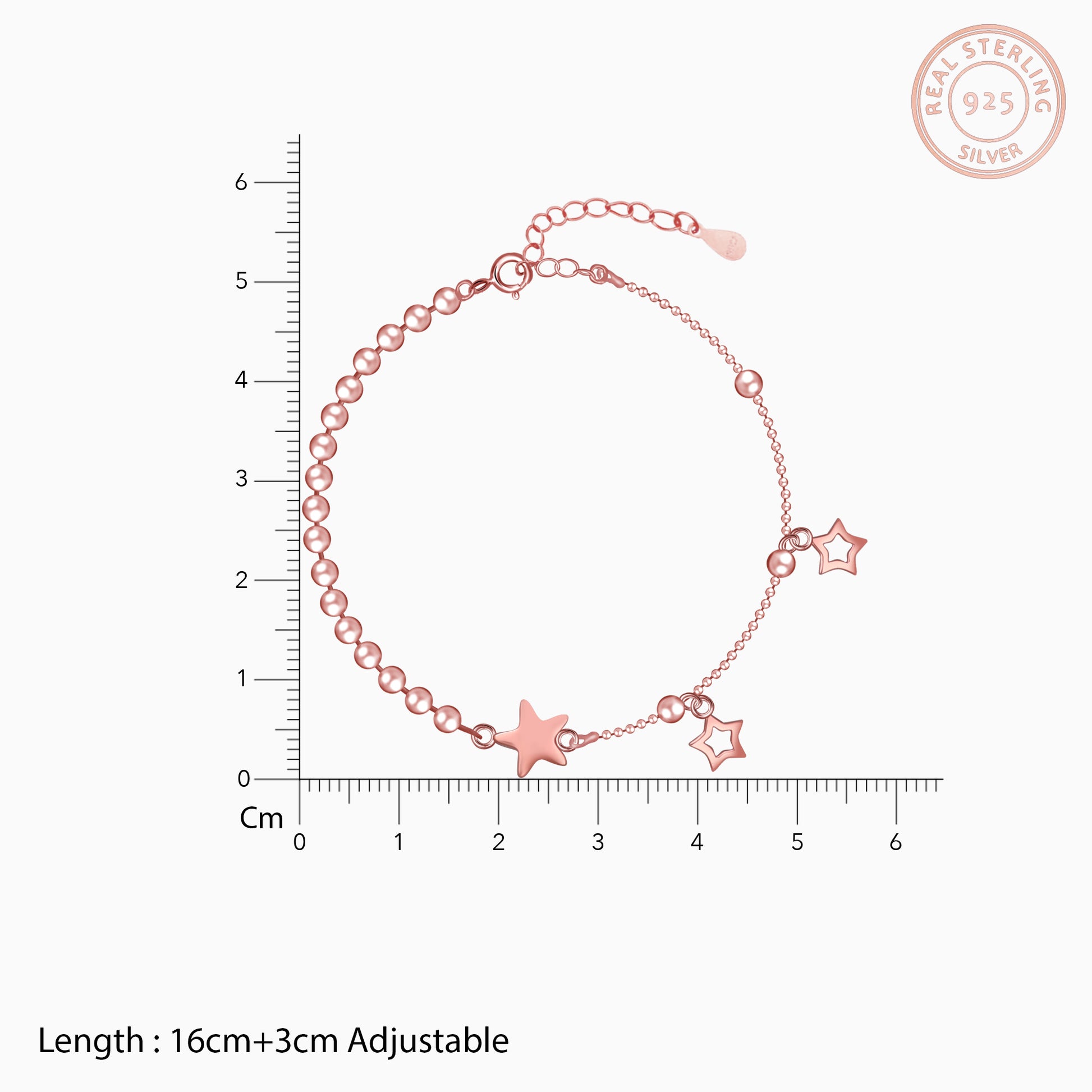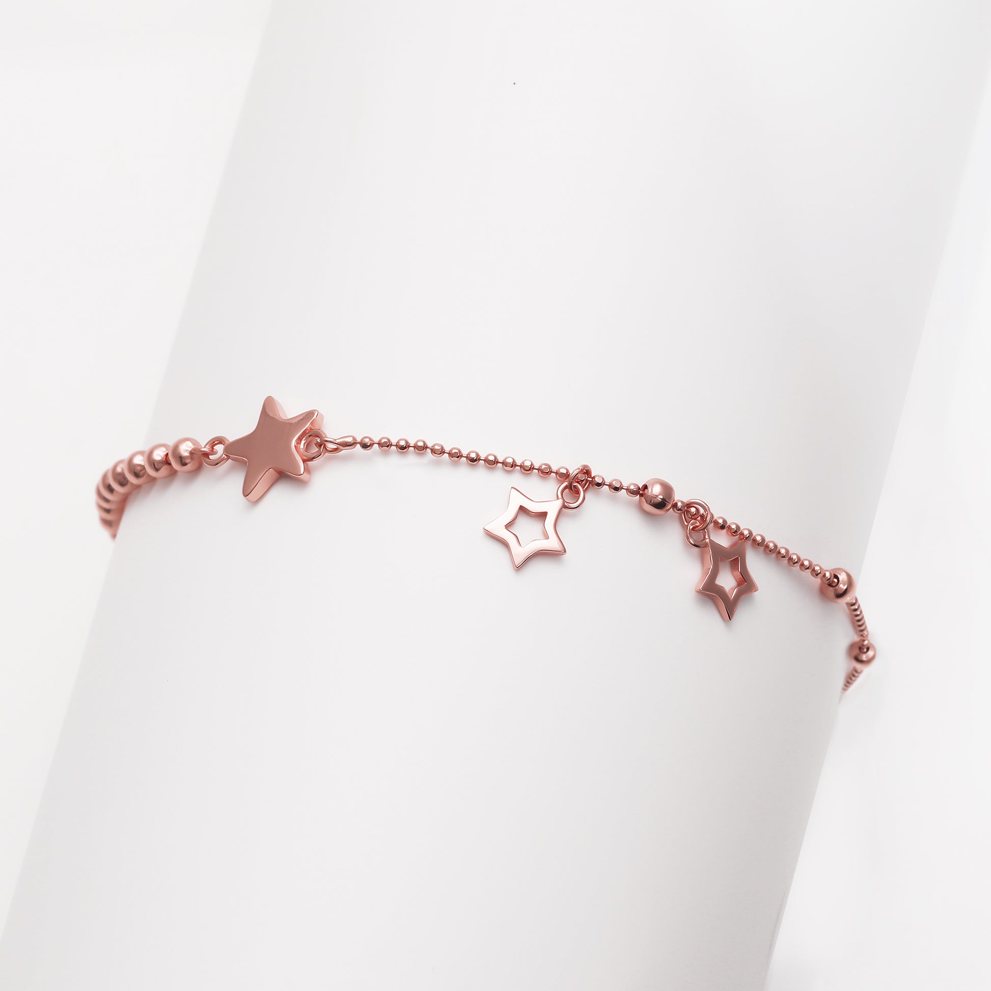 Divine is your synonym, divinity is your biggest trait, and nothing shines as bright as YOU. This Rose Gold Star Charm Bracelet is inspired by your shine and divinity.