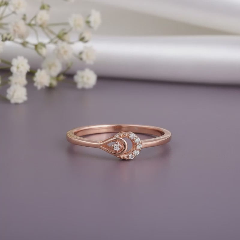 This rose gold ring for women features a dual-loop motif that flows seamlessly from a smooth, polished band. One curve of the loop is accented with pavé-set zircons, catching the light with every glance and adding a subtle glimmer of starlight.