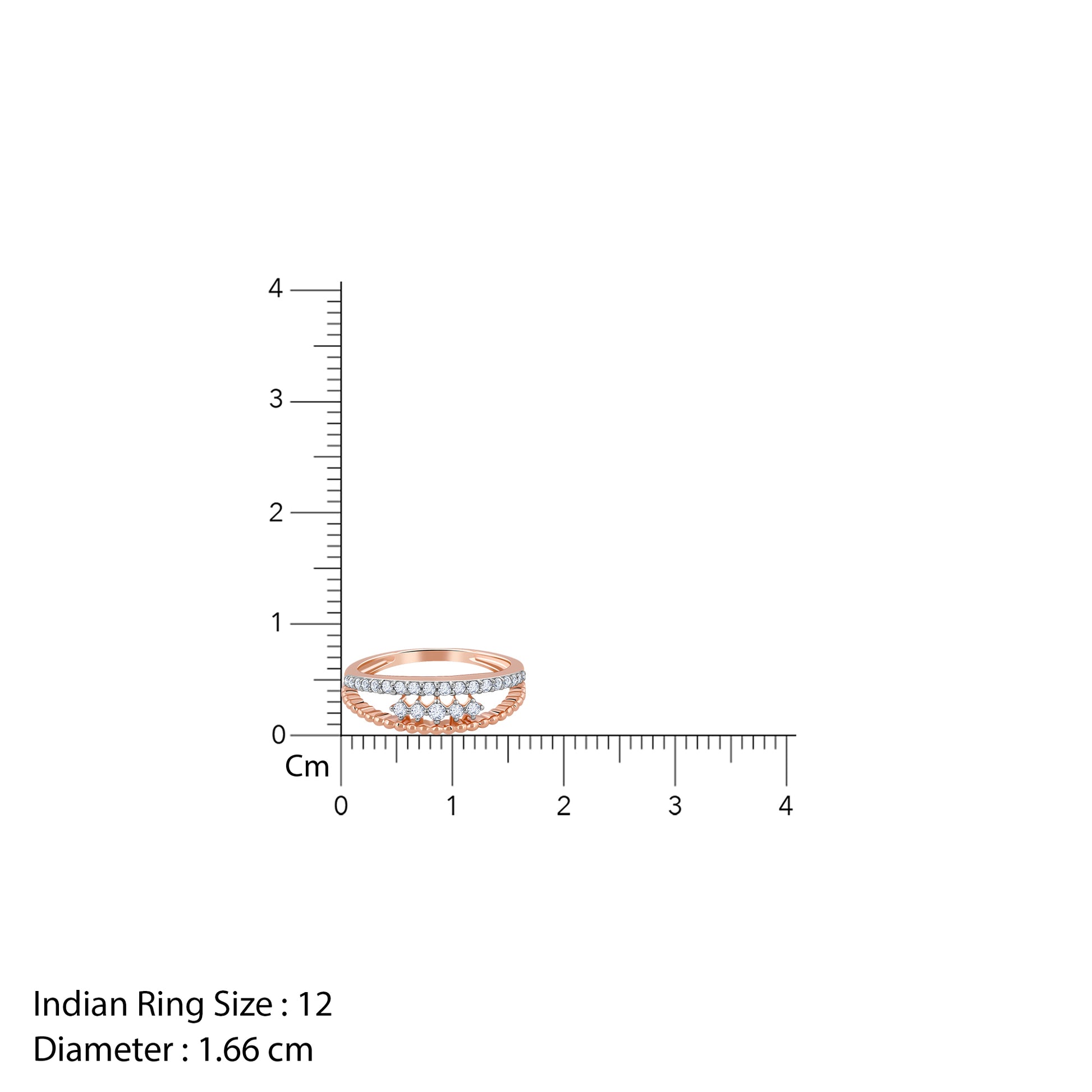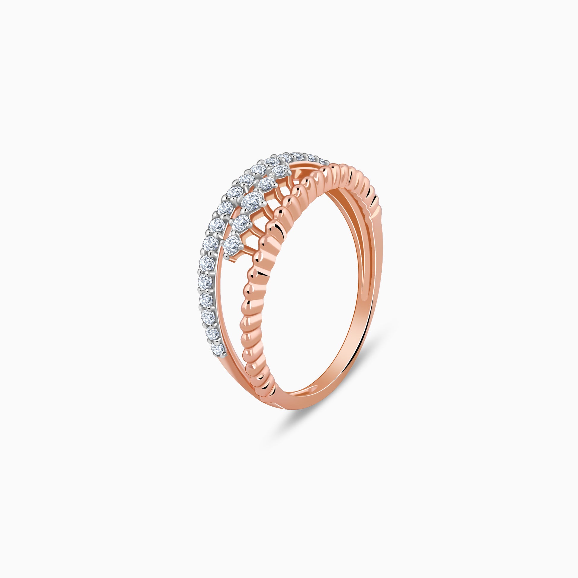 This pure rose gold ring for women features a dual-band design with lab-grown diamonds studded on it.