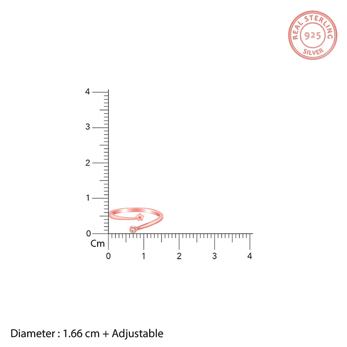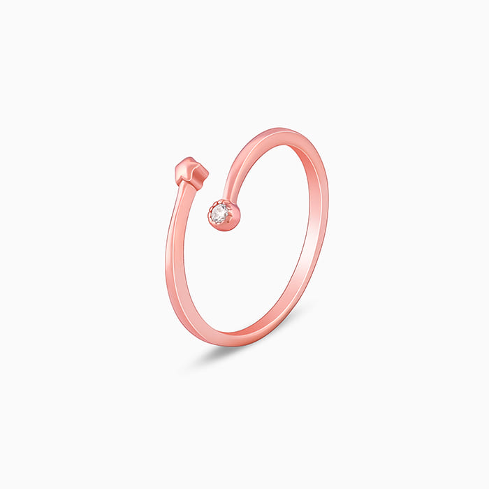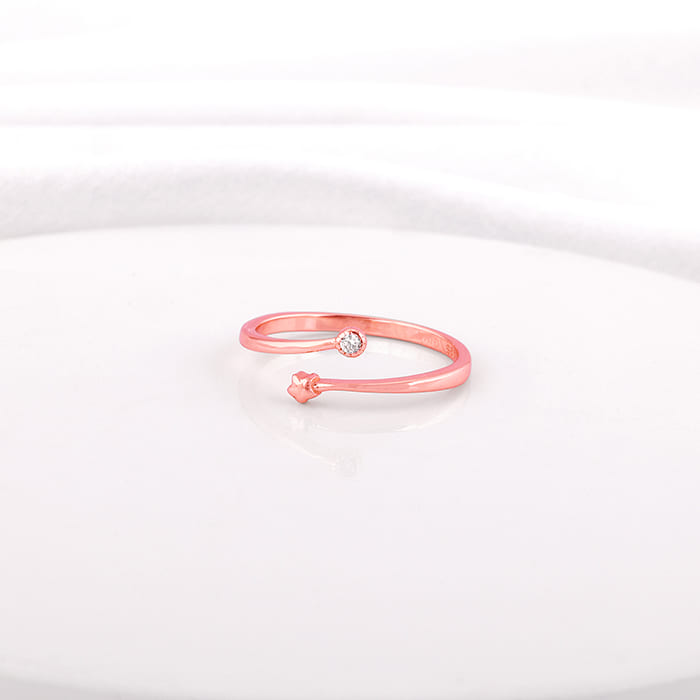 This minimal rose gold open ring features a plain star motif at one end and a charming circle zircon placed on the other.